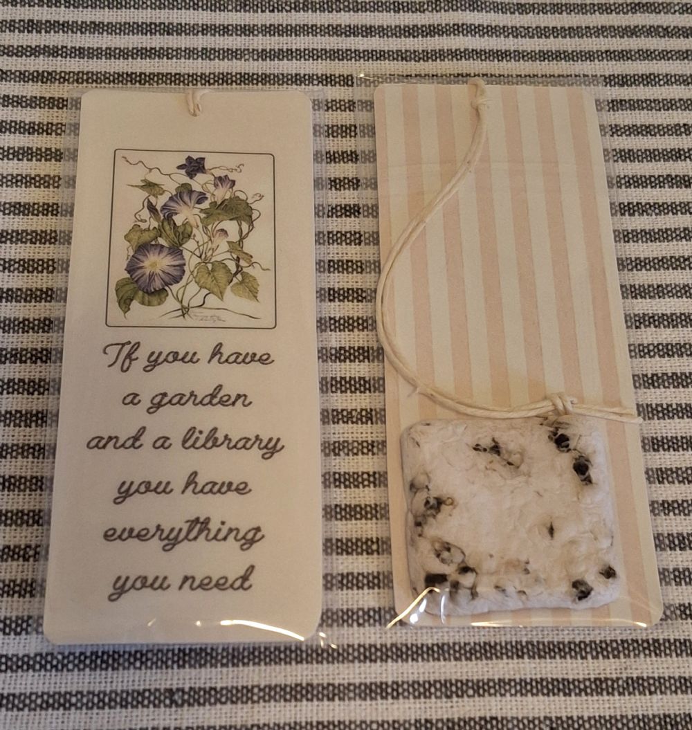 Descrizione:Carta seminabile + segnalibro in cartoncino plastificato.