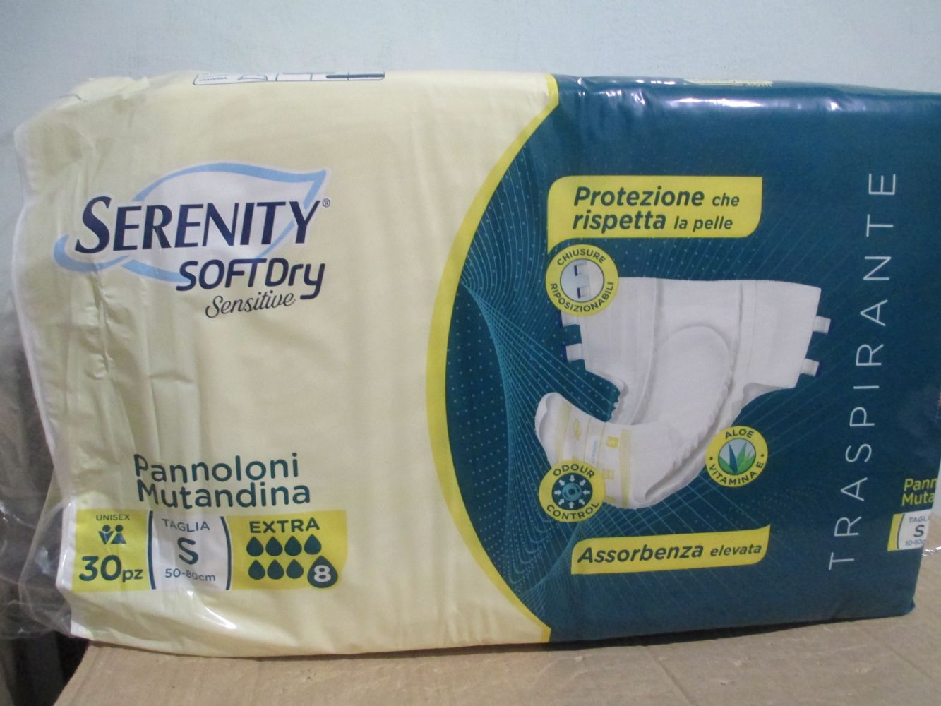 35 c. Scatolone 3 pacchi Pannoloni Serenity: SoftDry Sensitive Taglia S.