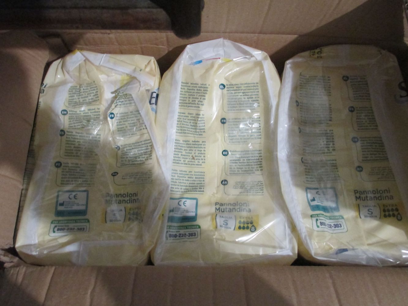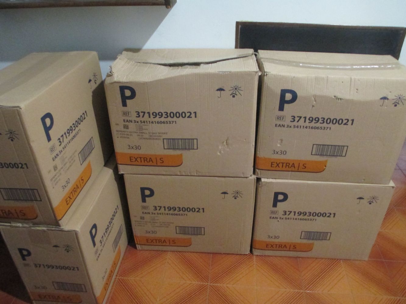 In ogni scatola ci sono tre pacchi e in ogni pacco ci sono trenta pannoloni.