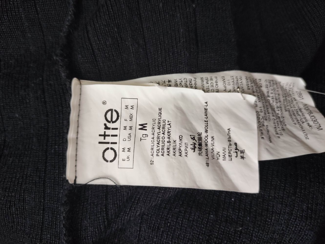 Taglia M, marca "Oltre". Secondo me adatto fino alla 50. Fatto in Italia ( dichiarazione in etichetta)