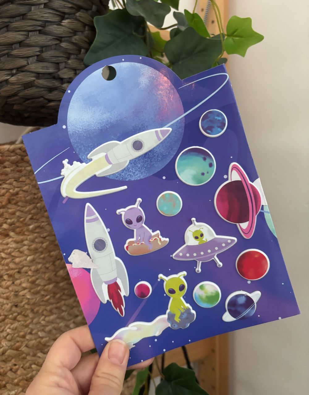 Descrizione:Tema spaziale attacca e stacca, di quelli di plastica, un pochino alti che si possono attaccare ovunque