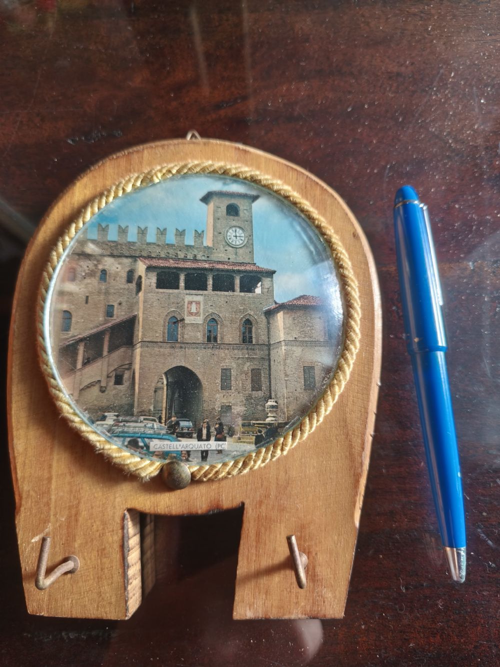 Descrizione:In legno, con gancio per appenderlo e ganci per chiavi in metallo. Ha i suoi anni.