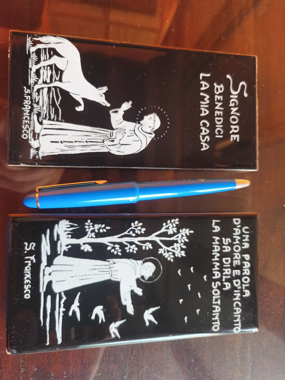 Fatte dello stesso materiale delle piastrelle, quella di destra ha un angolino leggermente sbeccato.
