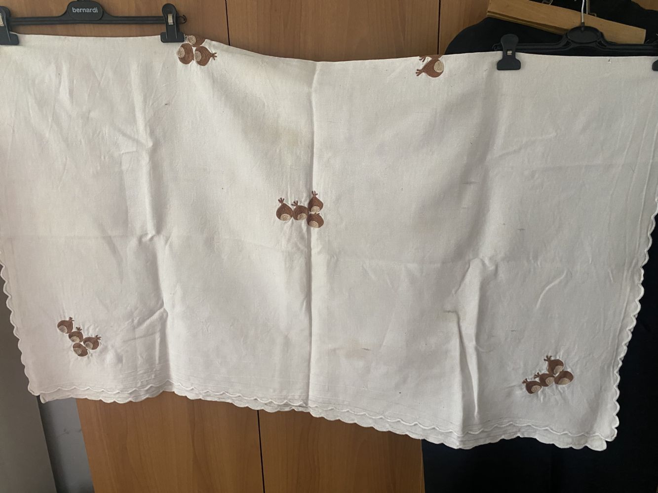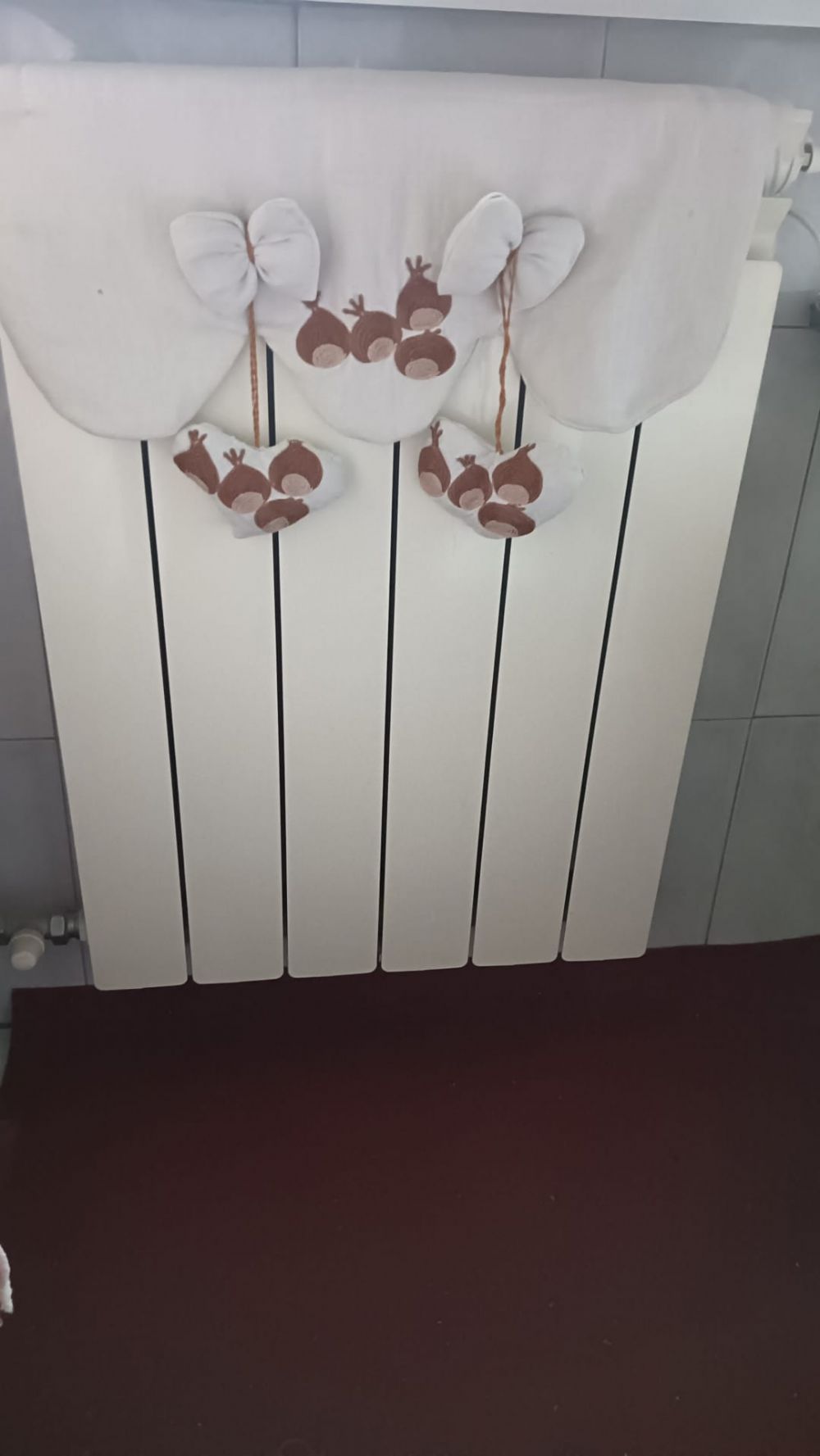 Descrizione:da una tovaglia non più utilizzabile come tale ho creato per necessita un copricalorifero:)