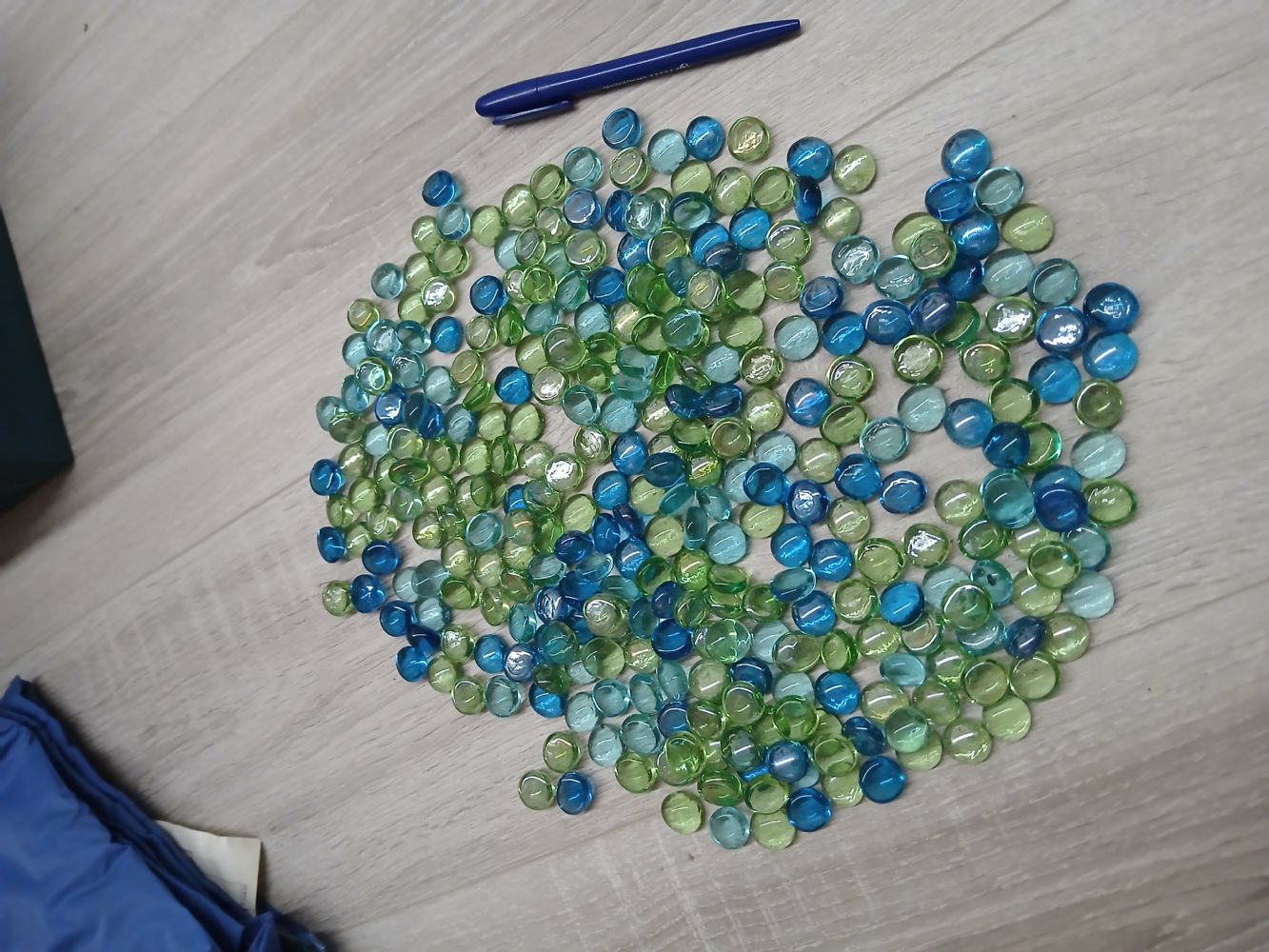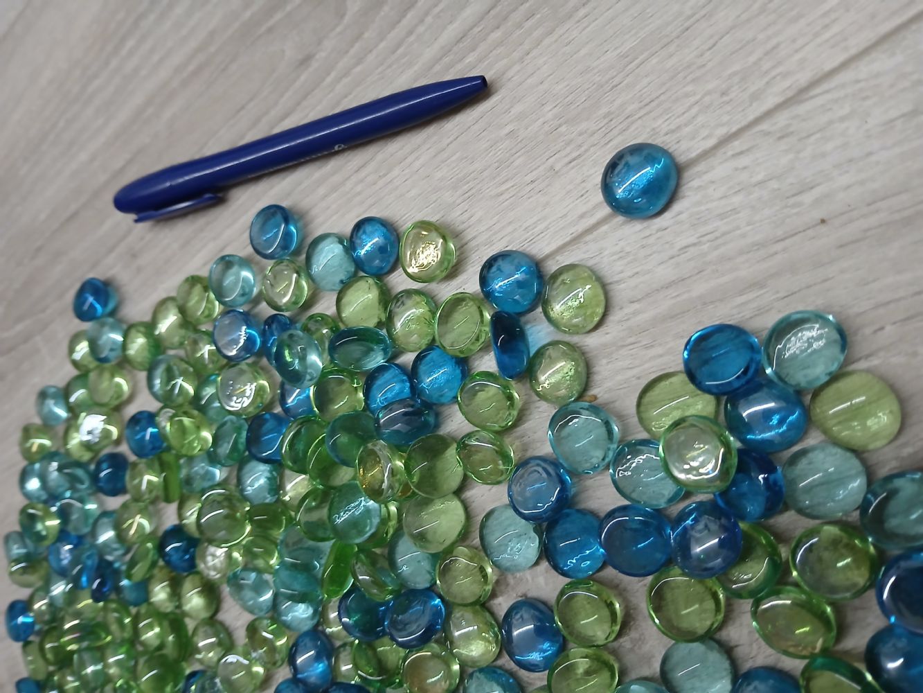 Descrizione:Palline piatte di vetro colorate. Penna per le dimensioni. Vorrei spedire 2 pacchi entro Natale