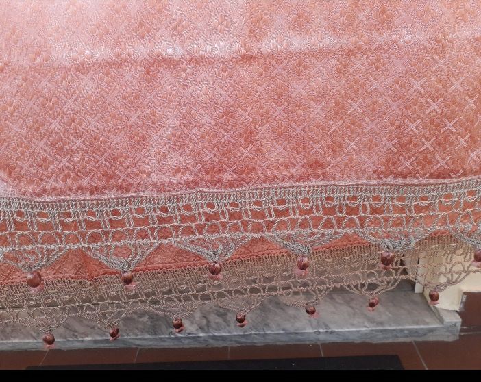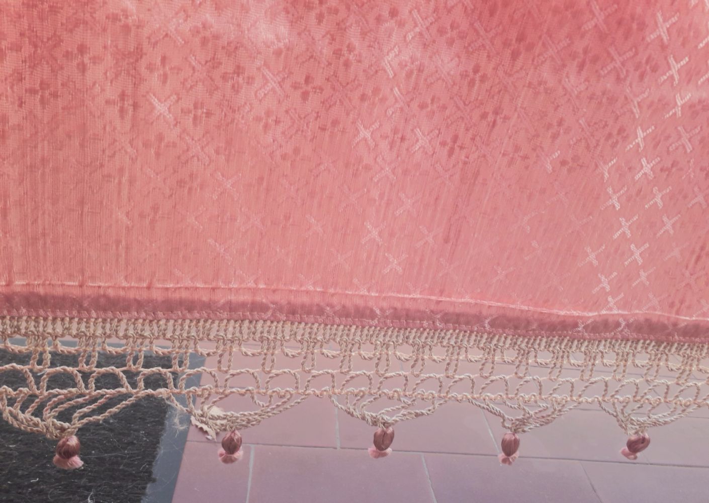 Descrizione:Copriletto matrimoniale in raso di seta con bordatura. Colore rosa antico - Mis. 220 x 250