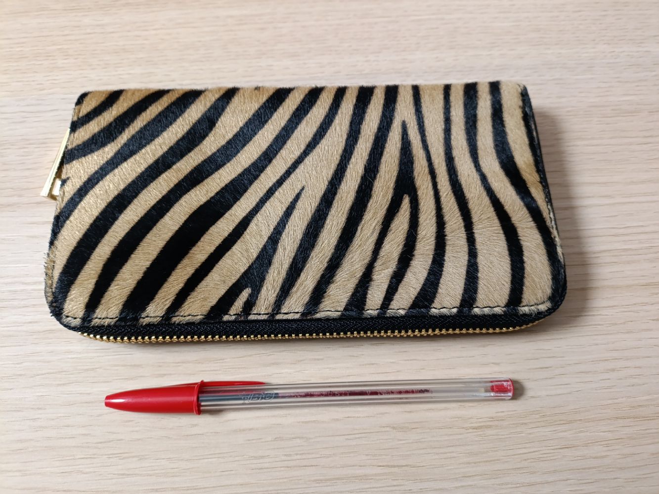 Descrizione:Portafoglio in vera pelle con esterno peloso (credo si dica cavallino). Chiuso con cerniera, con taschina interna per gli spiccioli e altre taschine. Nuovo ma senza scatola