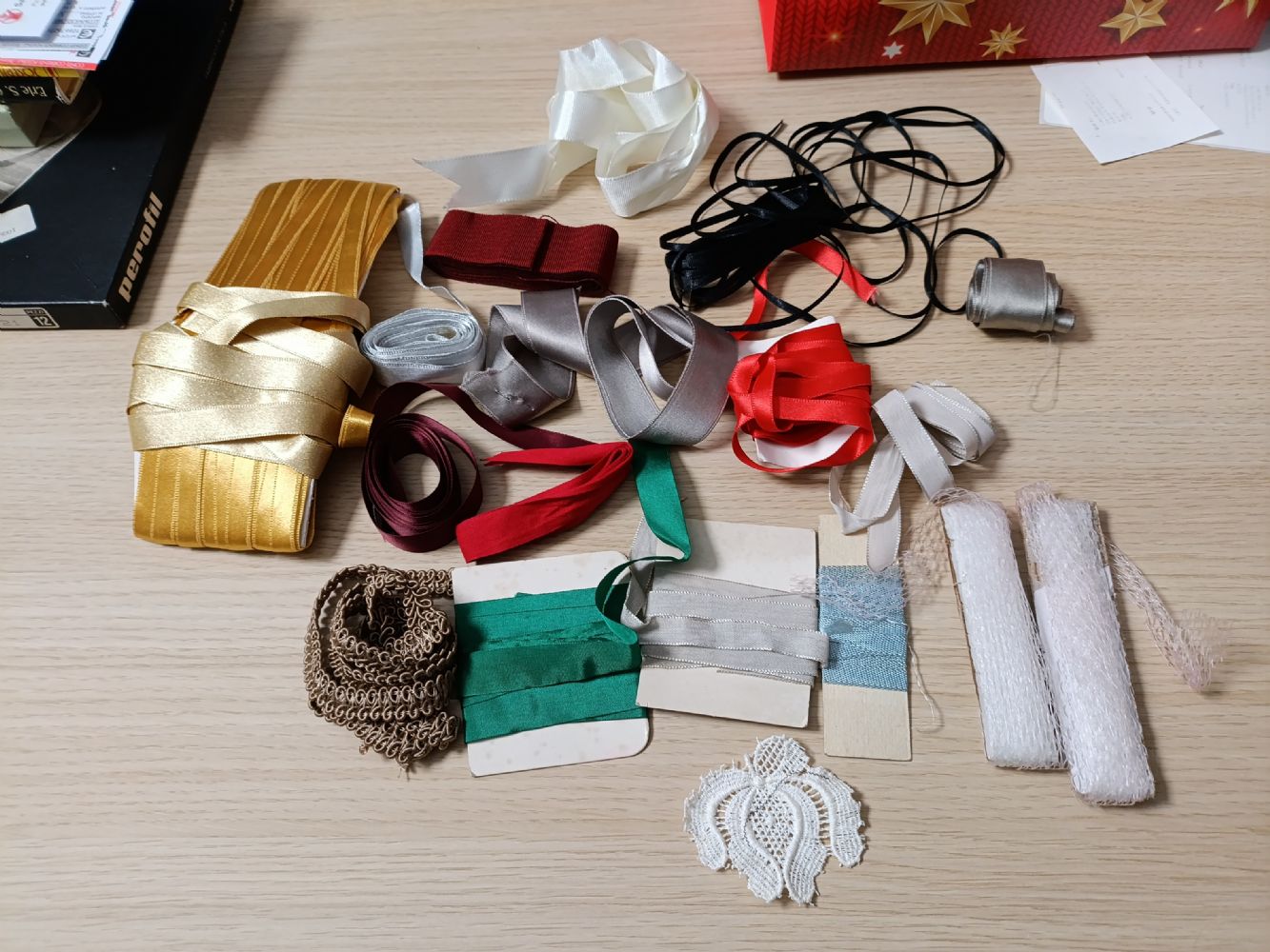 Descrizione:Gran misto di nastri, bordure e altro per lavori di cucito o per quello che vi suggerisce la vostra fantasia