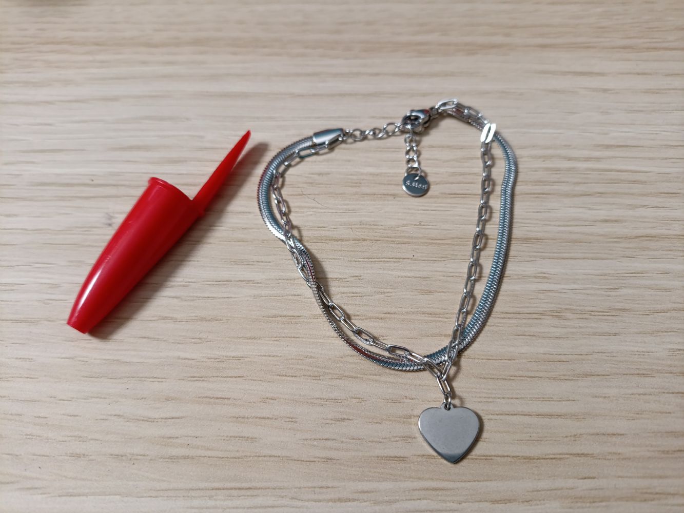 Lunghezza regolabile, due catene e un ciondolo. Nuovo e regalabile