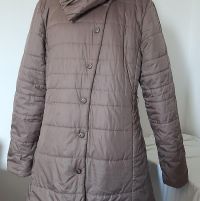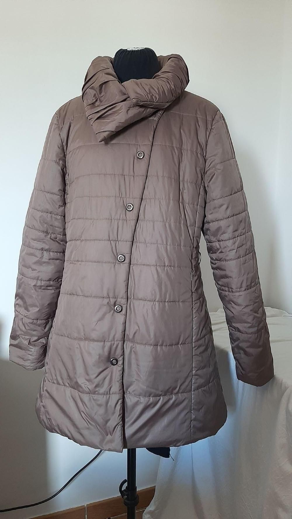 Descrizione:Giubbotto imbottito lungo color nocciola, modello ampio a campana con particolare collo a ciambella arricciato.