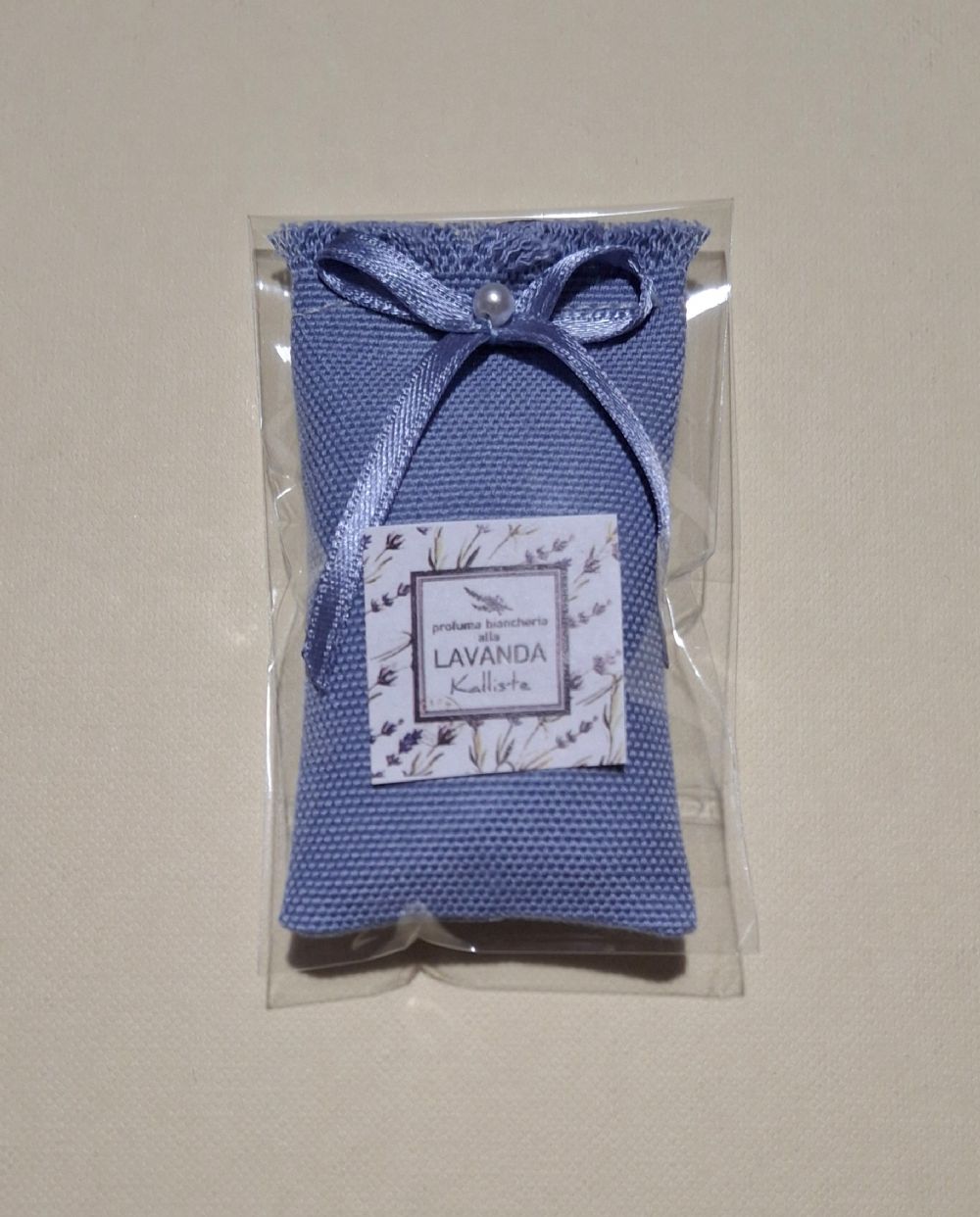 Sacchettino profuma biancheria realizzato con tessuto nuovo e riempito di lavanda bio raccolta quest''estate.