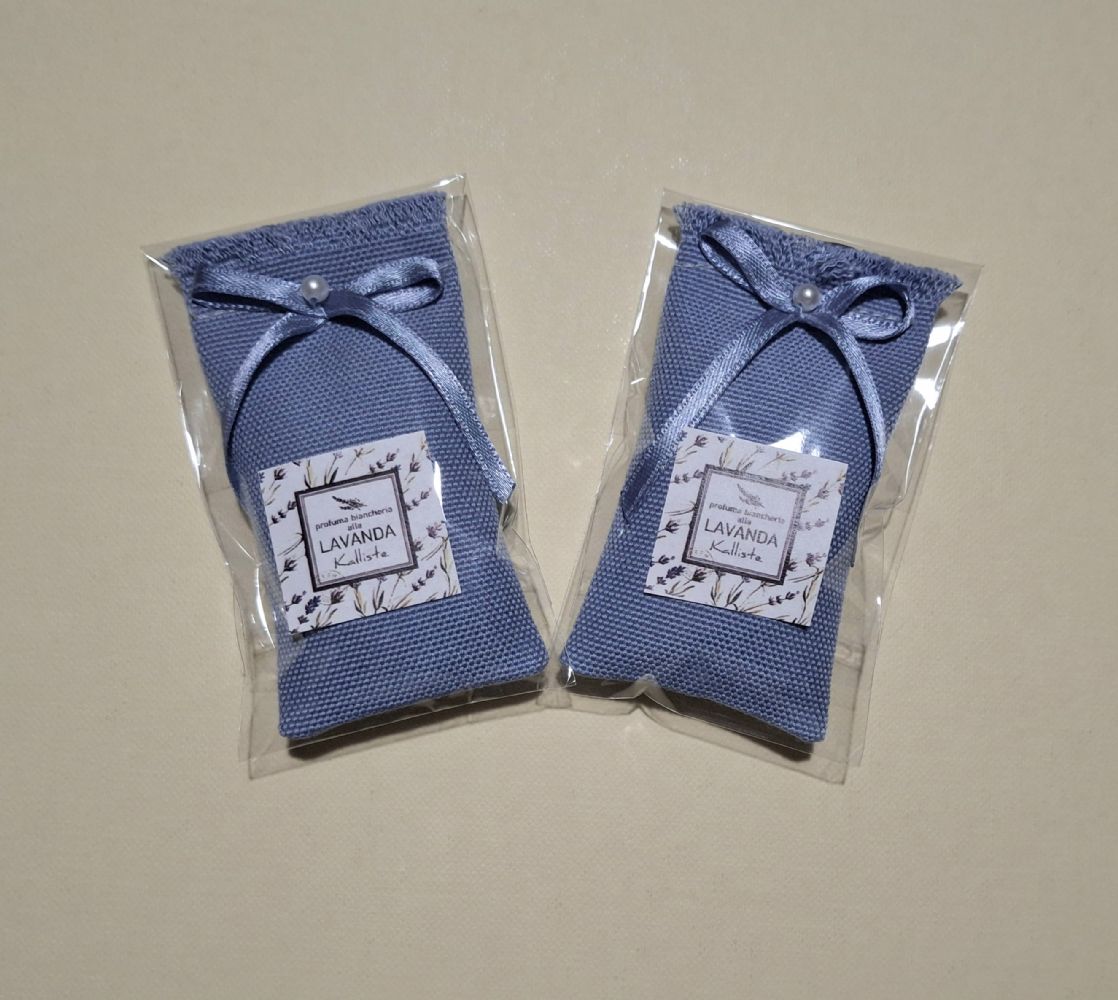 Descrizione:Sacchettino profuma biancheria realizzato con tessuto nuovo e riempito di lavanda bio raccolta quest'estate.