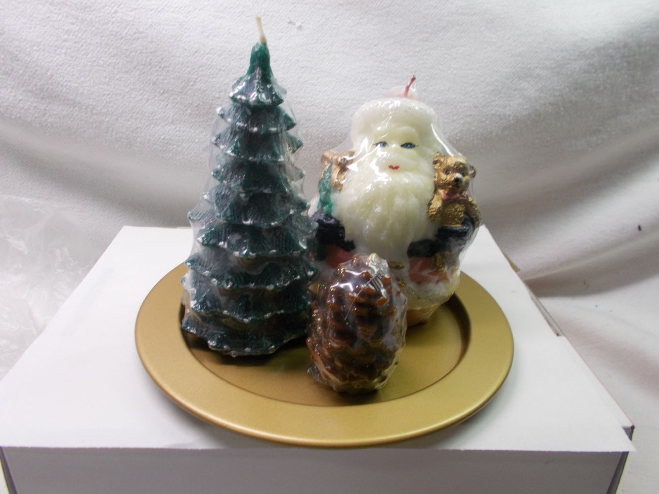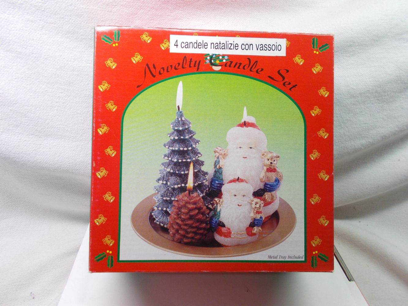 Descrizione:Set 4 candele natalizie sigillate con vassoio