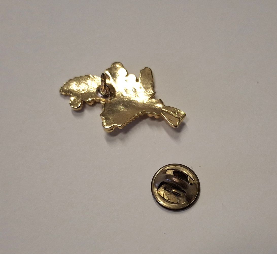 Descrizione:Dii piccole dimensioni ma graziosa e ben tenuta, solo il fermo è un po scuro tanto che sembra di un metallo diverso da quello della spilla, forse quello originare è stato perso.