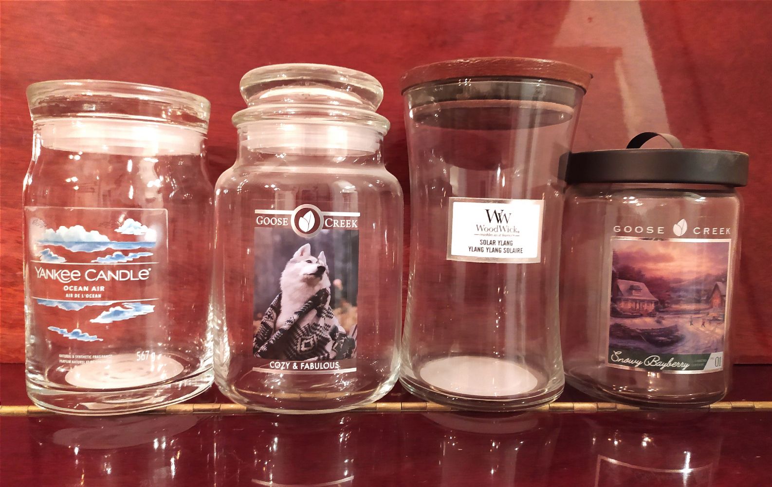 Descrizione:Giare di vetro grandi, contenevano candele.