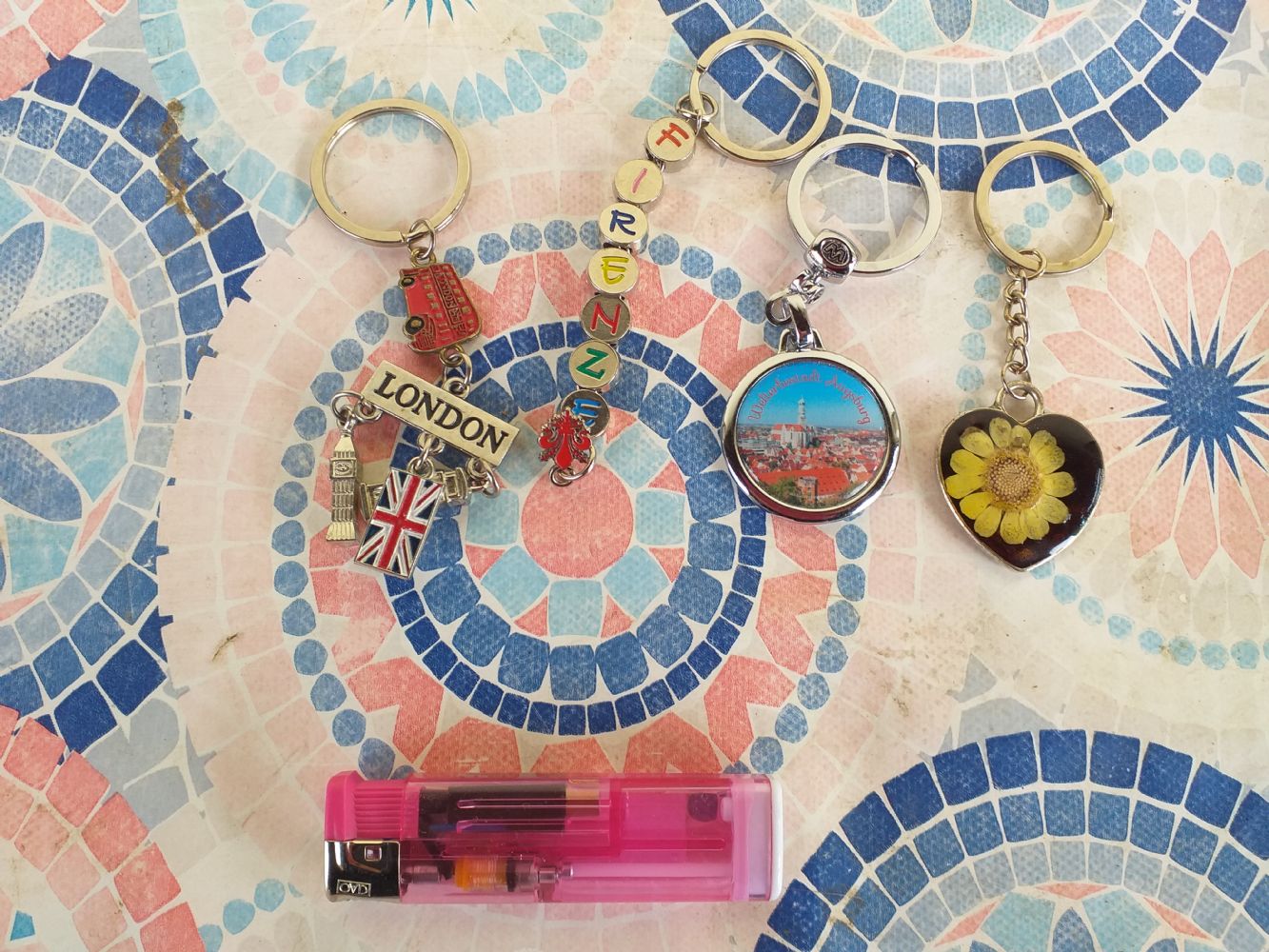 Descrizione:Lotto portachiavi usati e in buone condizioni generali. L'accendino è per la misura