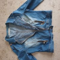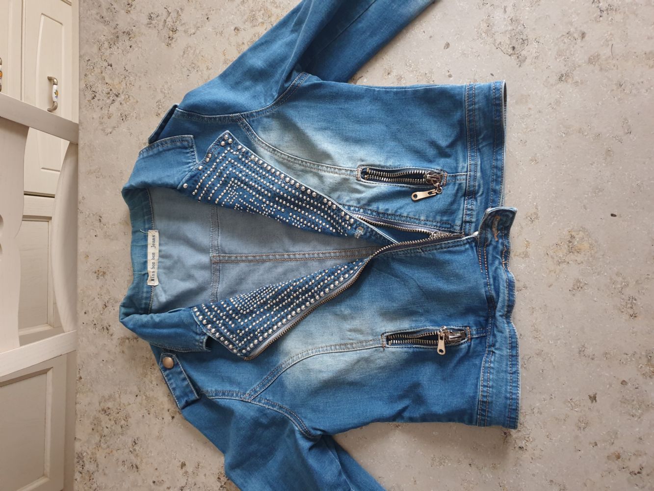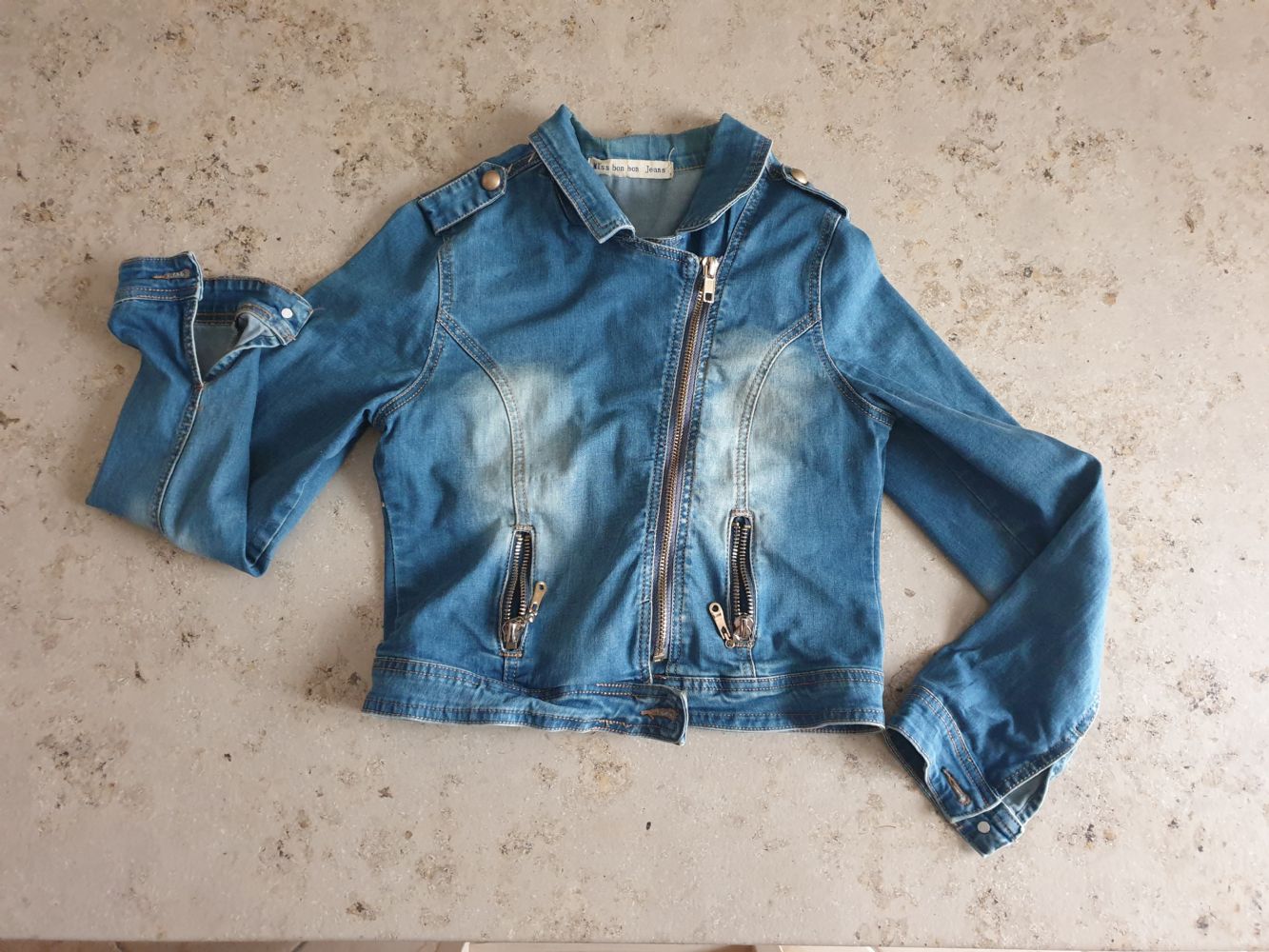 Giacchino jeans, corto, in doppia versione con apertura a V sbrilluccicoso oppure chiuso da zip