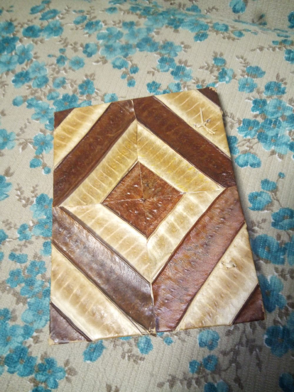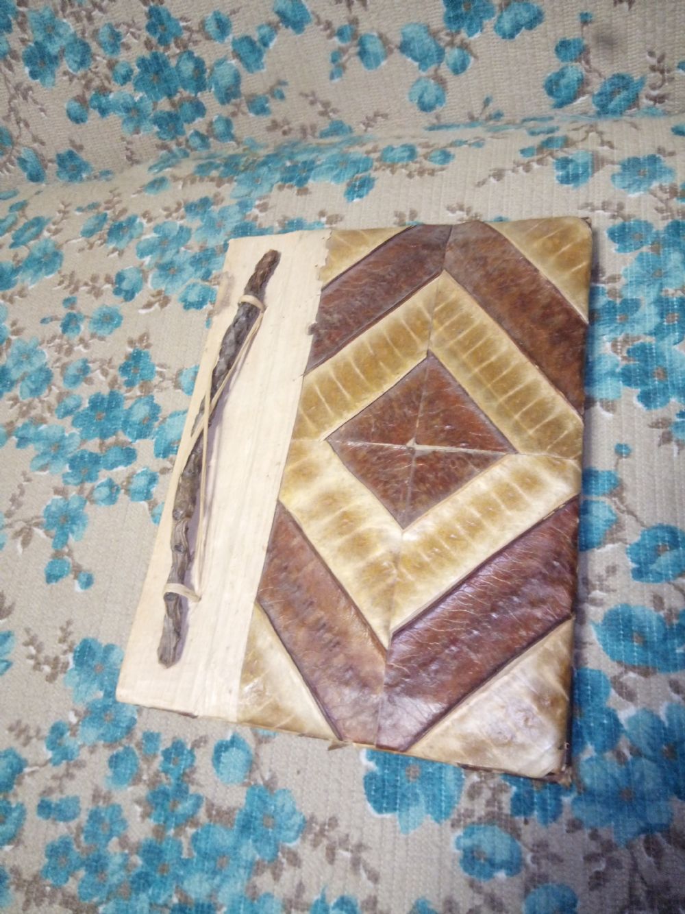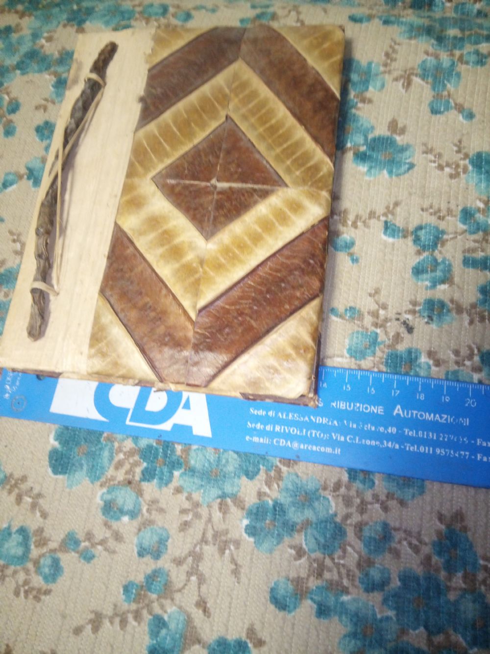 Descrizione:Come mostra l'immagine la copertina di questo quaderno o può anche diventare un diario è realizzata con materiali naturali ,e pure gli intarsi che presenta.