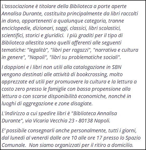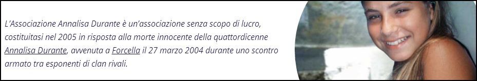 nata in memoria di Annalisa Durante, quattordicenne uccisa per sbaglio a Forcella (NA) nel 2004, durante uno scontro tra clan rivali .