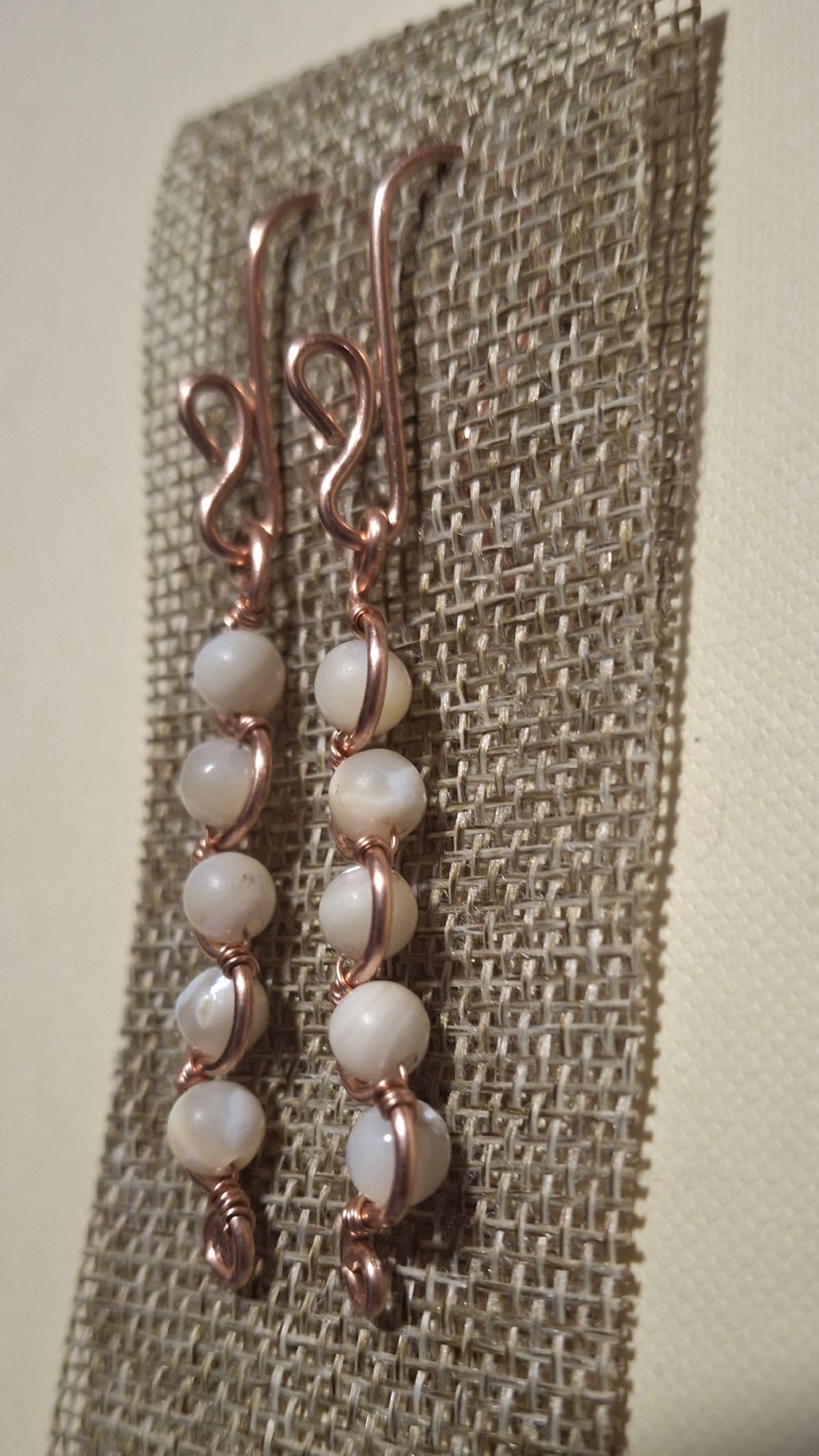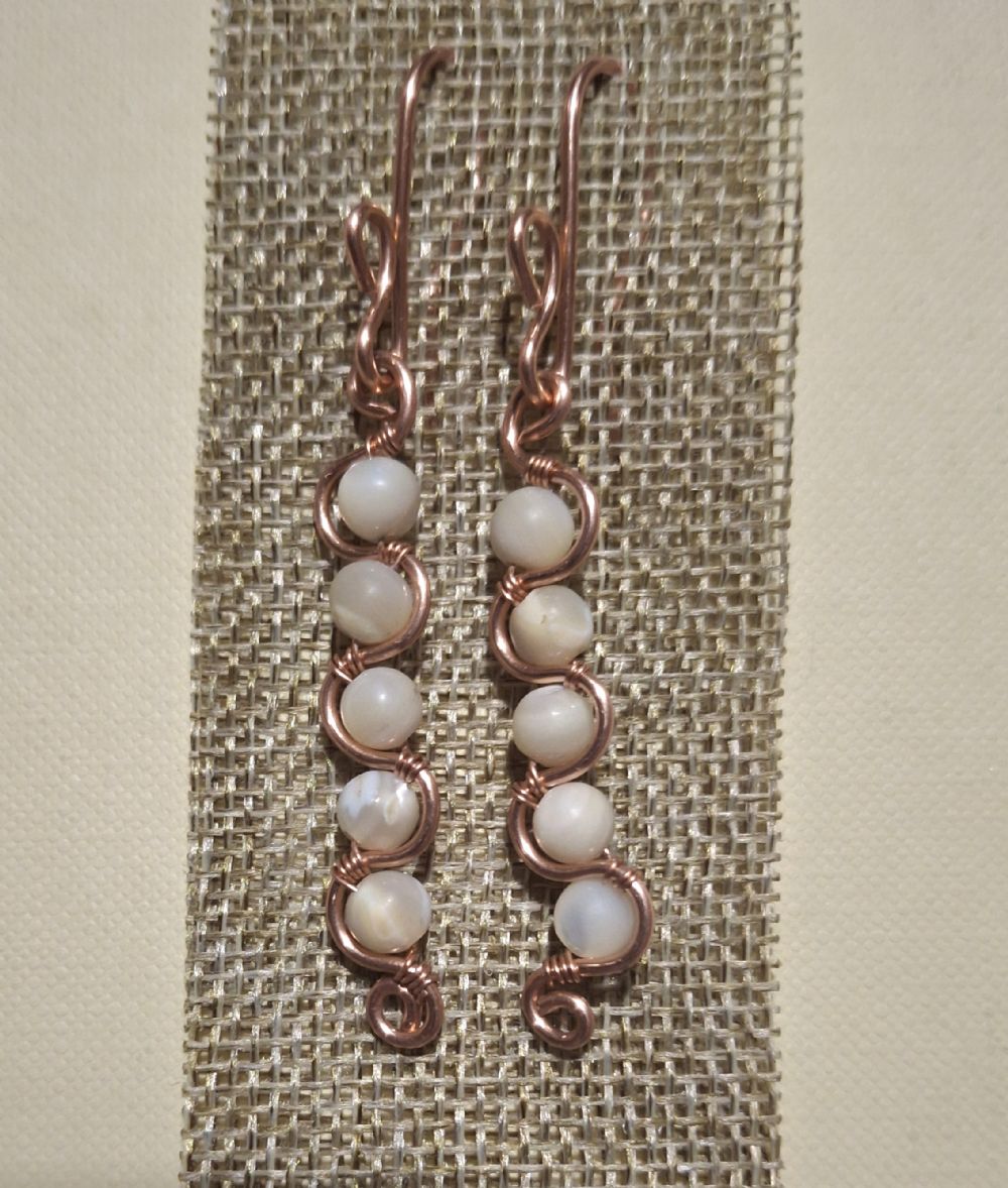 orecchini rame e madreperla.