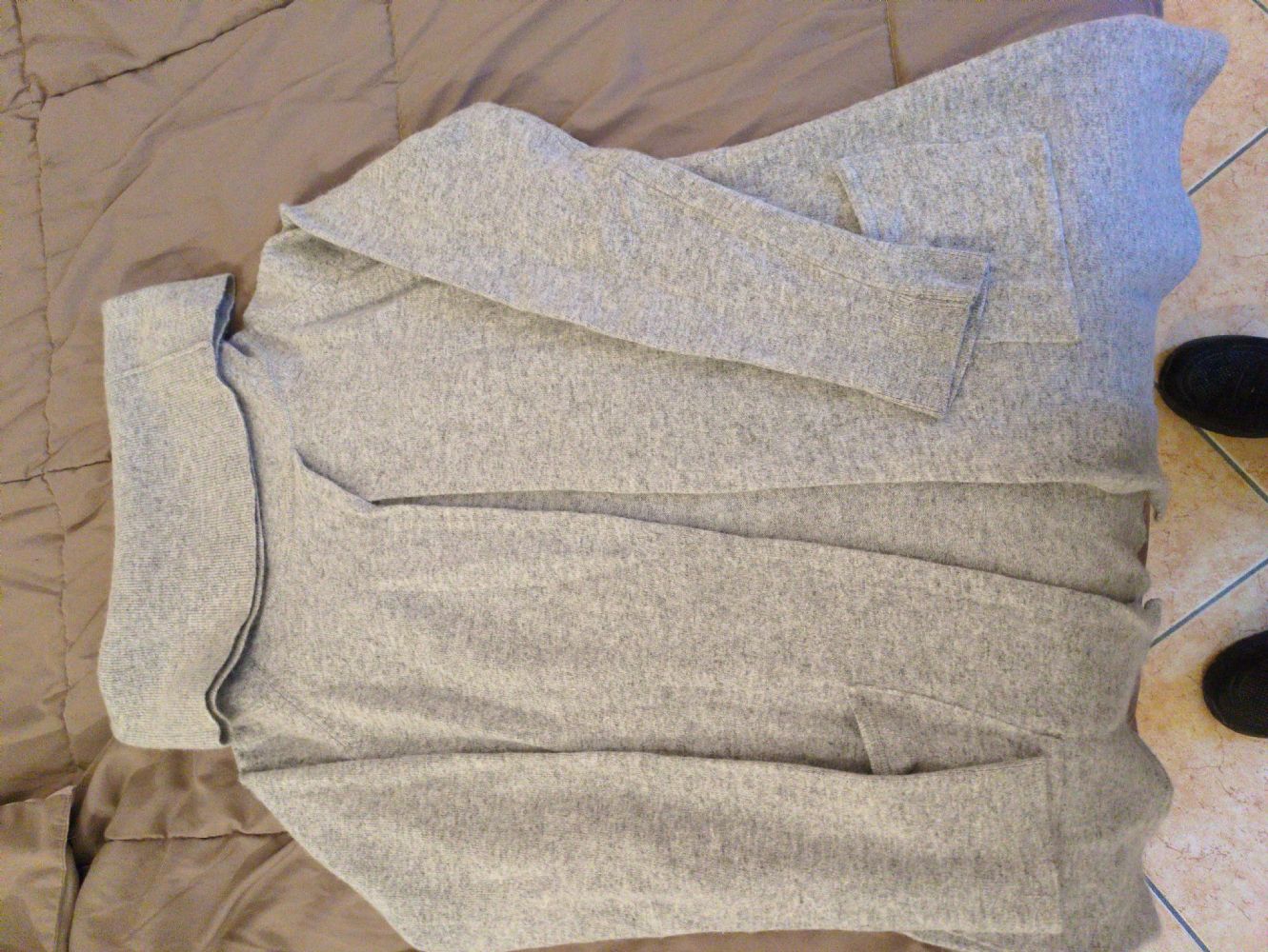 Cardigan donna invernale tg M collo alto, colore grigio chiaro,lana Merino, viscosa, cashmere e poliammide.