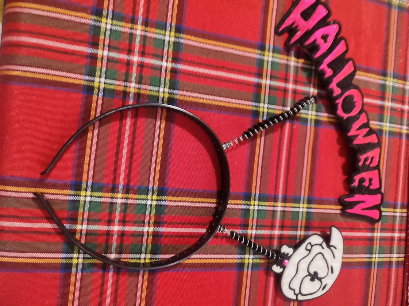 Descrizione:Cerchietto per Halloween si è staccata la scritta dal supporto penso vada incollata