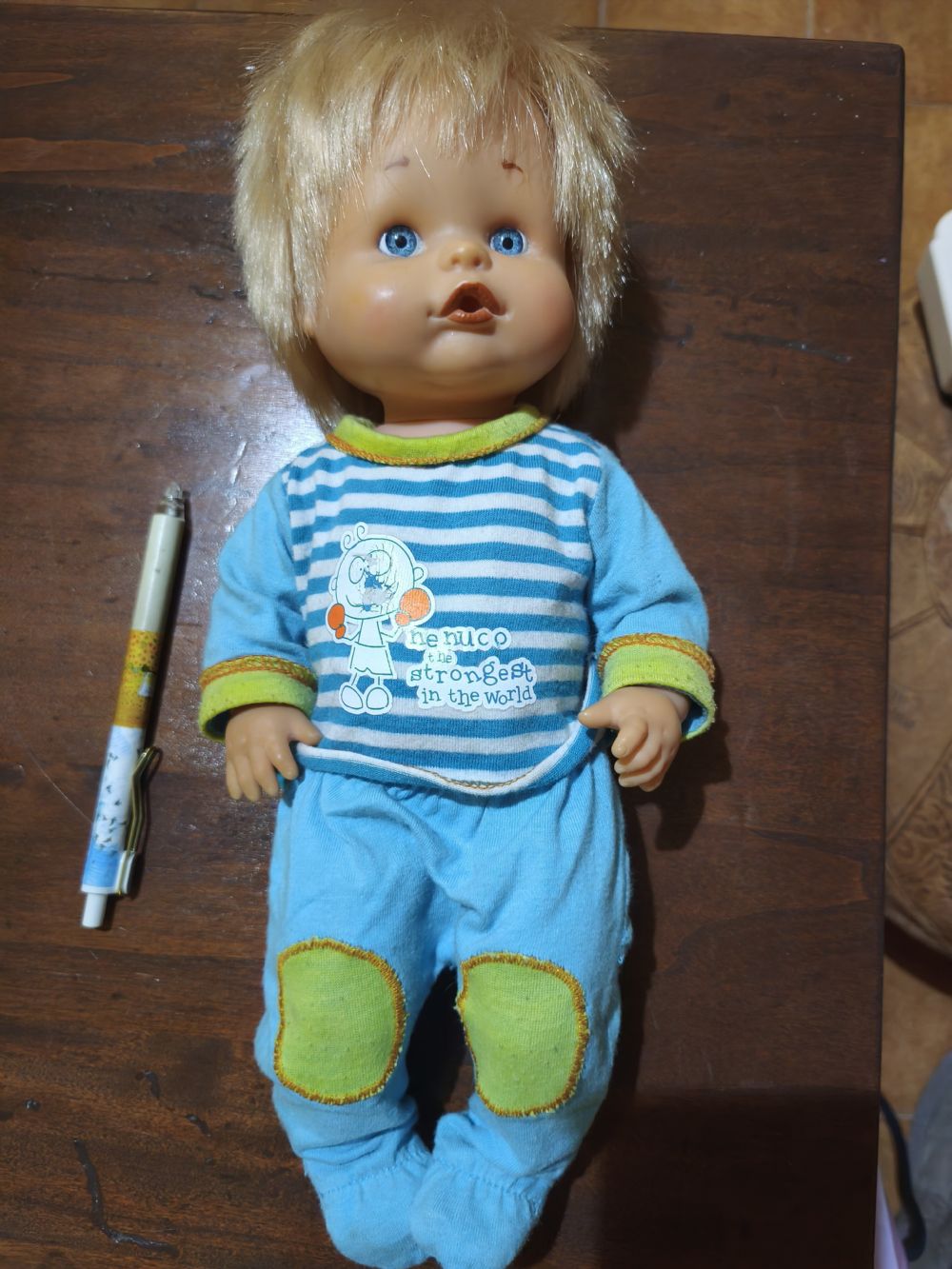 Marca Famosa, in plastica con vestito in stoffa. Il disegno sulla maglietta si sta leggermente rovinando.