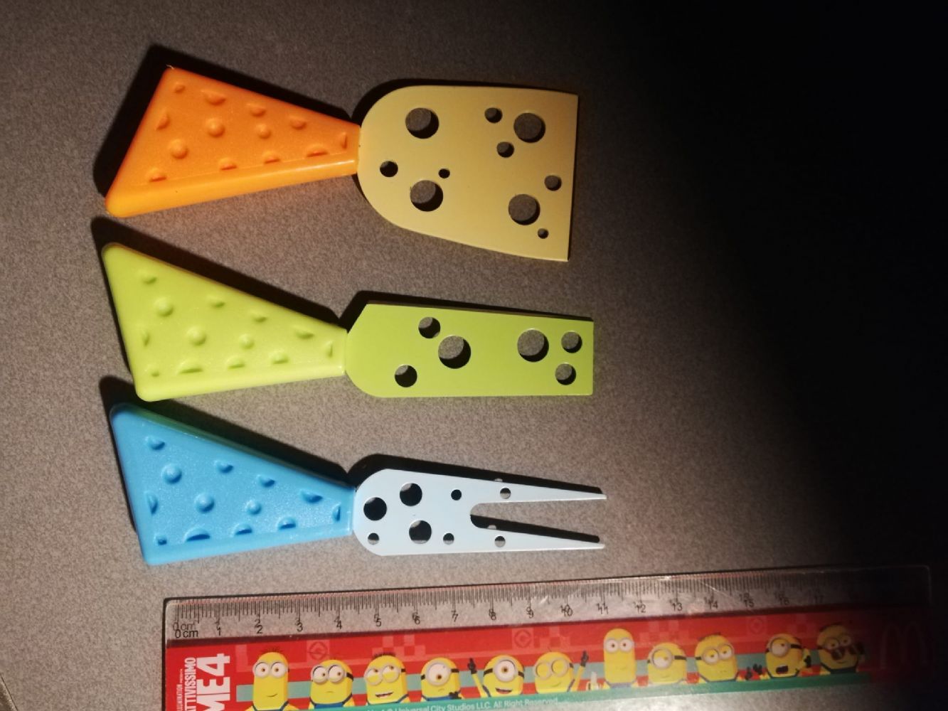Set di coltelli da formaggio mai usati, con manico in plastica. Marca Leroy Merlin.