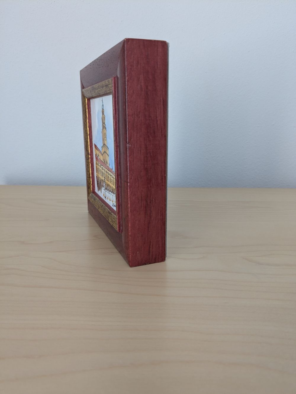 Descrizione:Quadretto di forma quadrata, la cornice è spessa cm 3 con piccolo panorama realizzato a mano. Nuovo, nessun difetto.