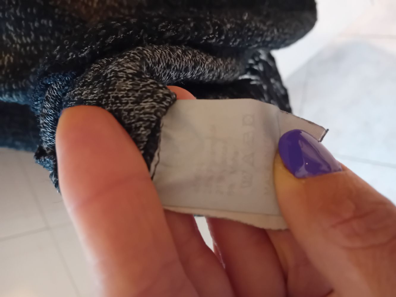Buono stato solo che si son tirati dei fili si è scolorita etichetta composizione provo a fotografarla non prendo misure