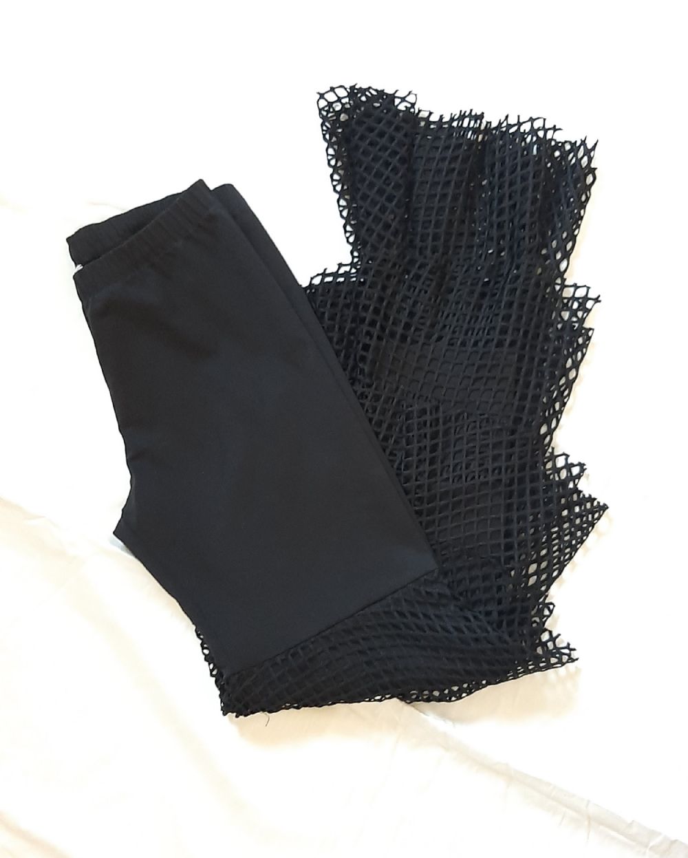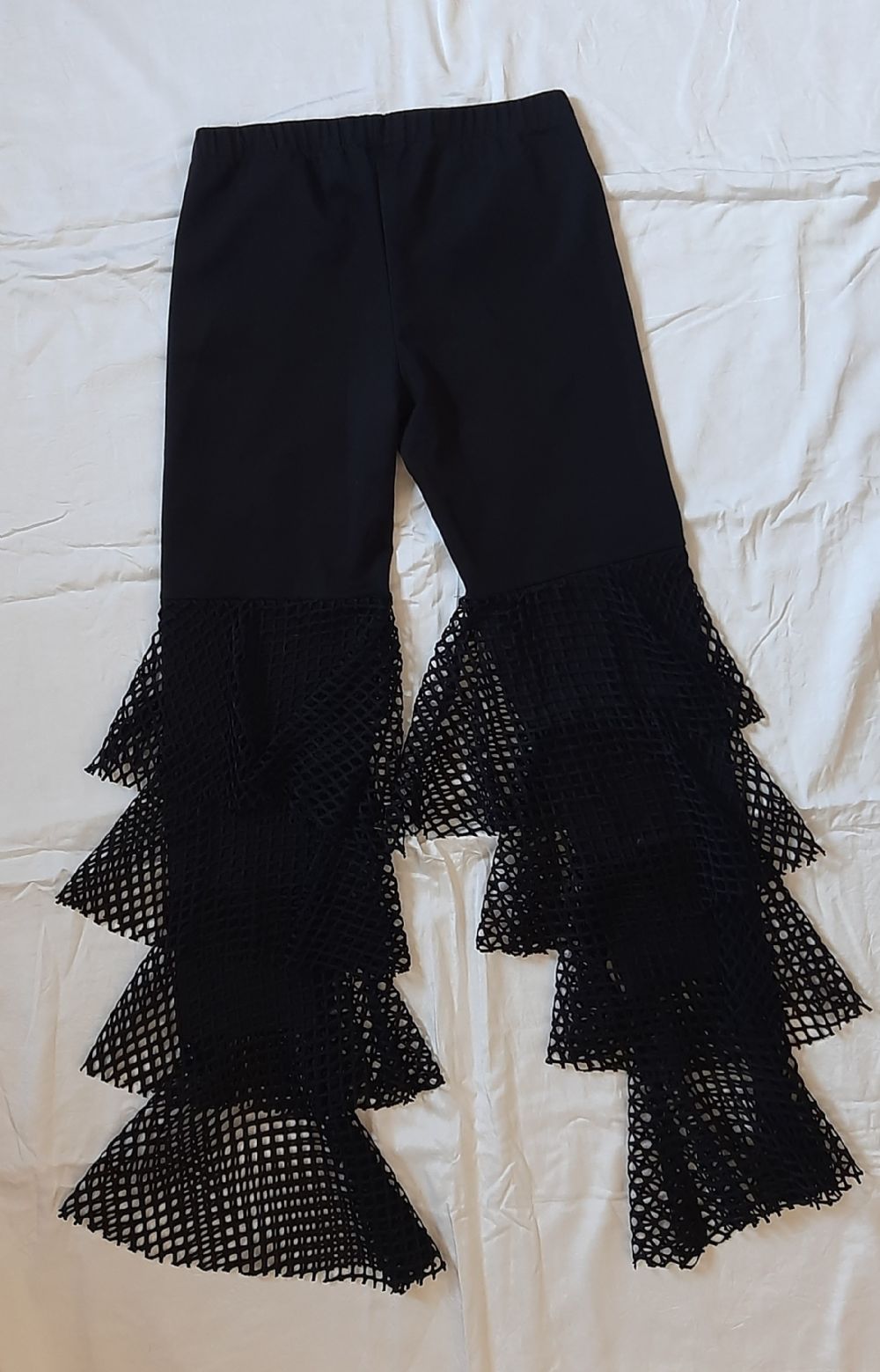 Descrizione:Pantalone leggings nero con volant in rete Gaelle Paris donna.