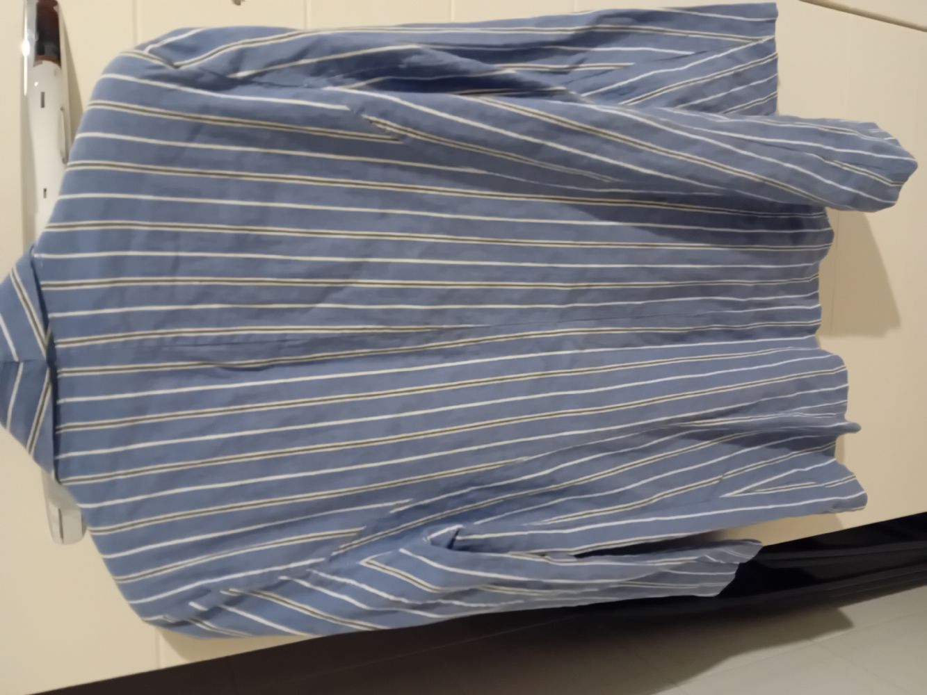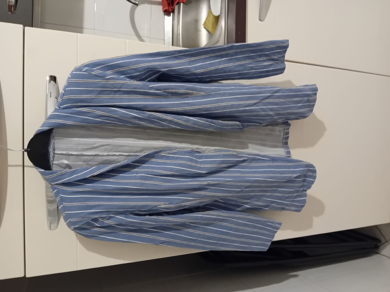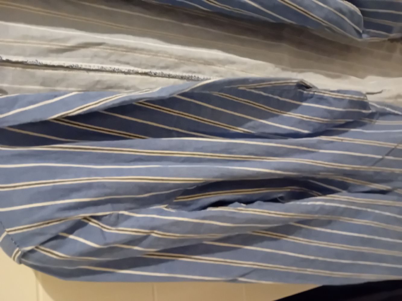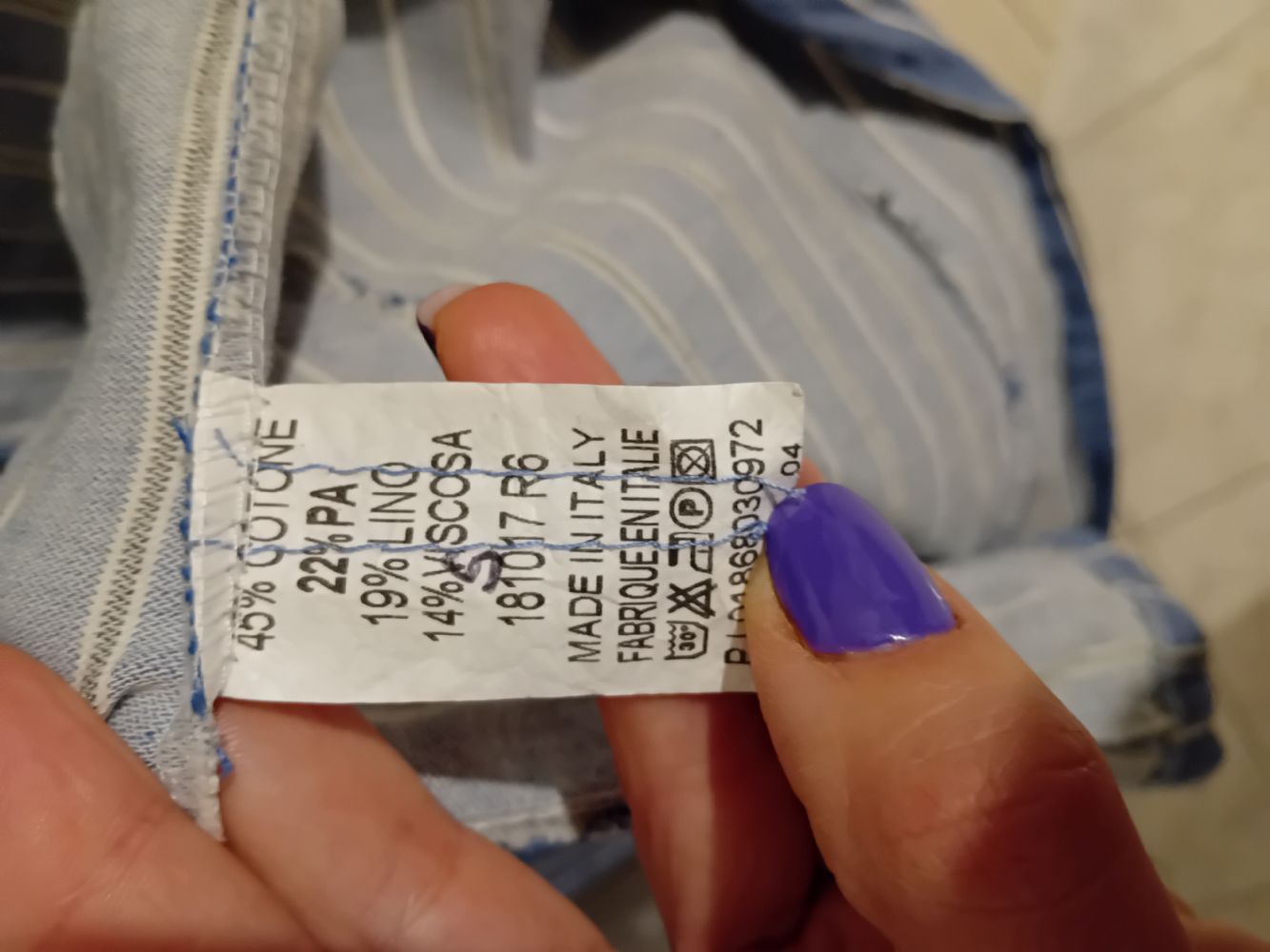 Forse non si vede bene ma è stupenda non prendo misure direi m /l faccio foto etichetta la consistenza è tipo lino