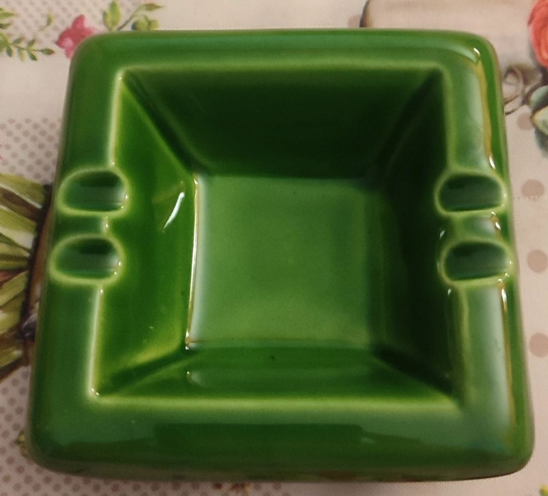 Descrizione:Bellissimo posacenere vintage di colore verde, dalla forma quadrata.