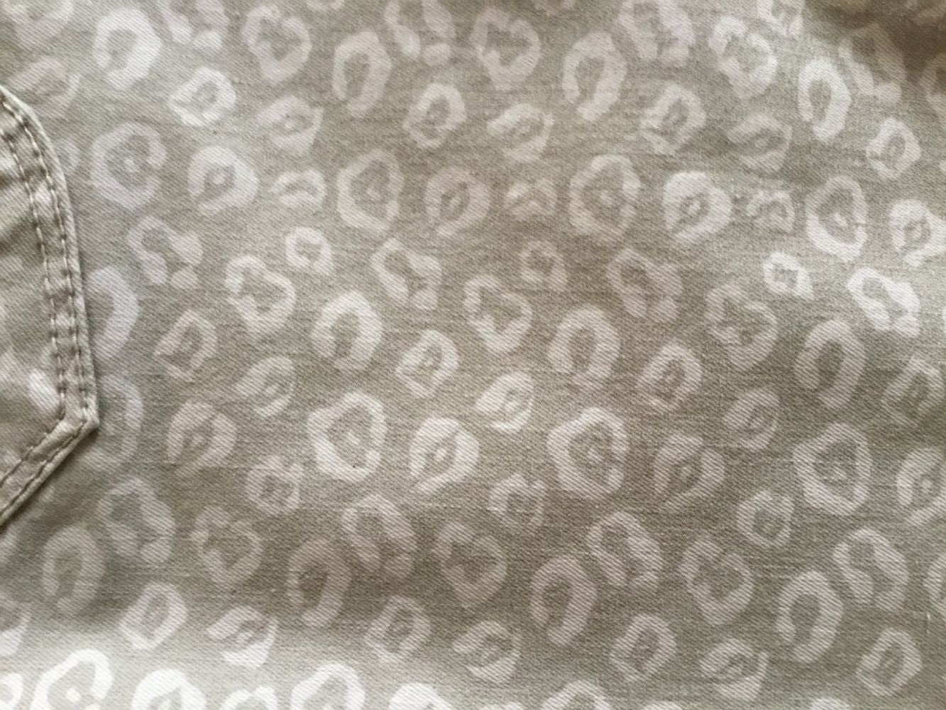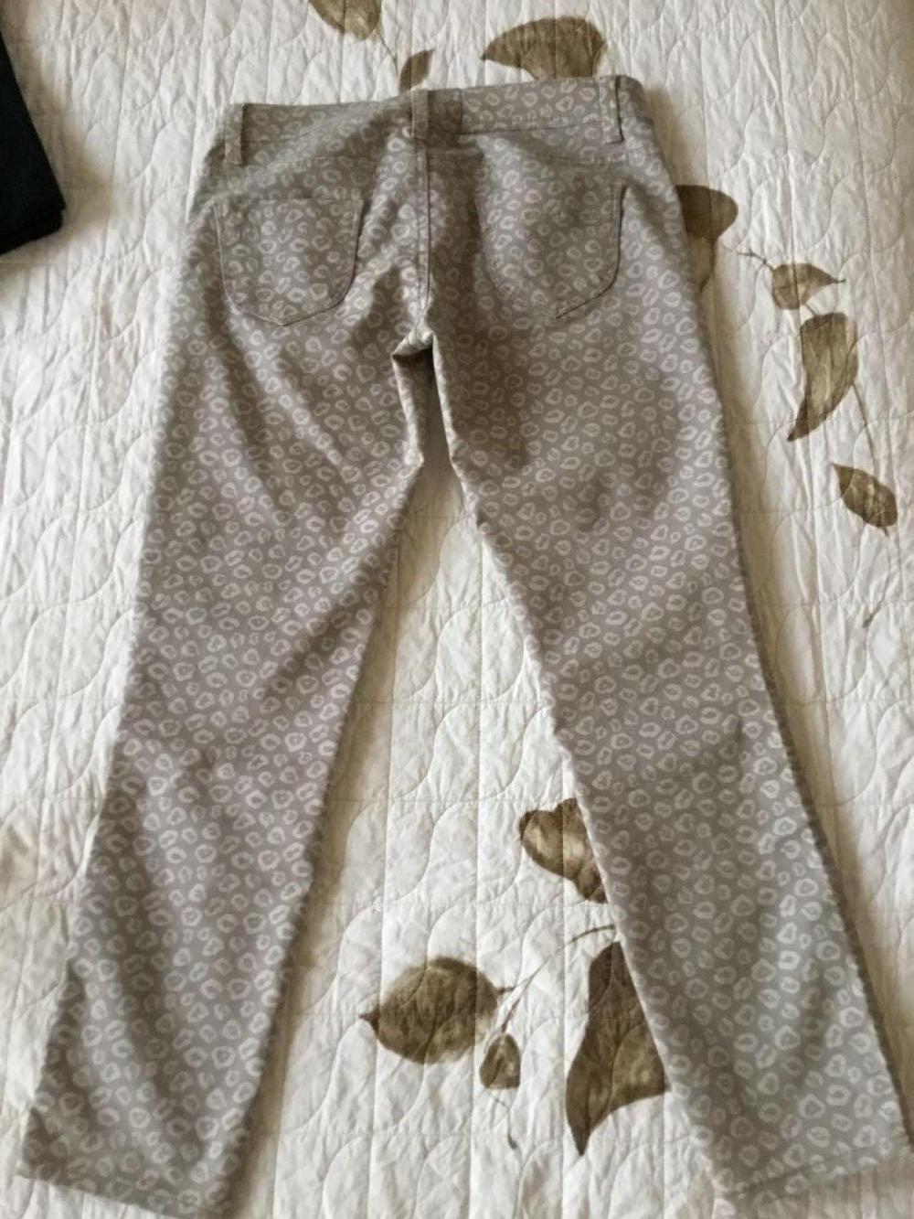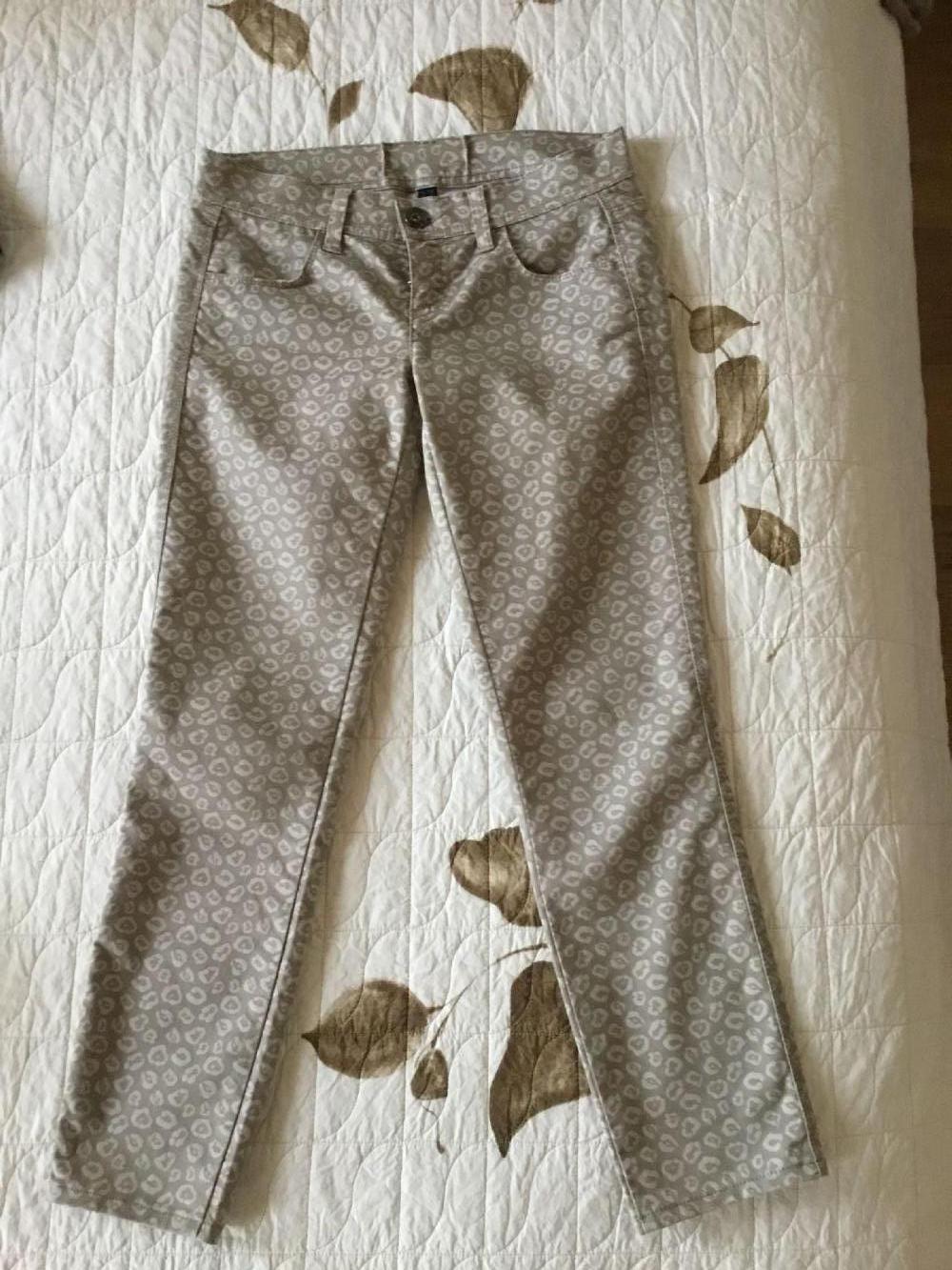 Descrizione:Pantaloni Benetton, beige a fantasia maculata, in cotone elasticizzato, adatti per primavera ed estate.