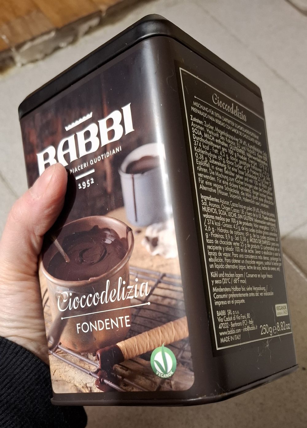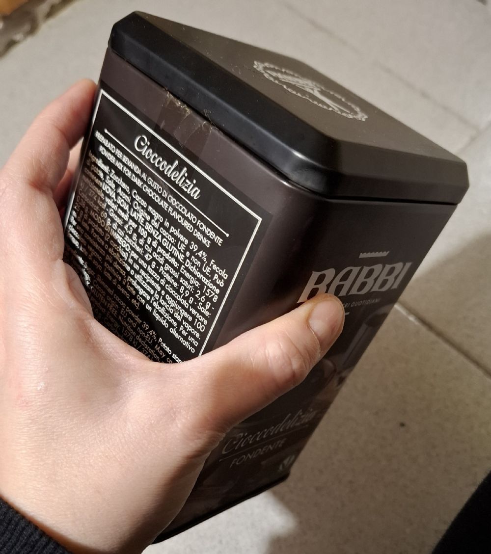Descrizione:Scatola di latta molto bella, conteneva il cioccolato Babbi, onestamente mi spiacerebbe buttarla, può essere usata come contenitore, per le misure vedere foto con la mano