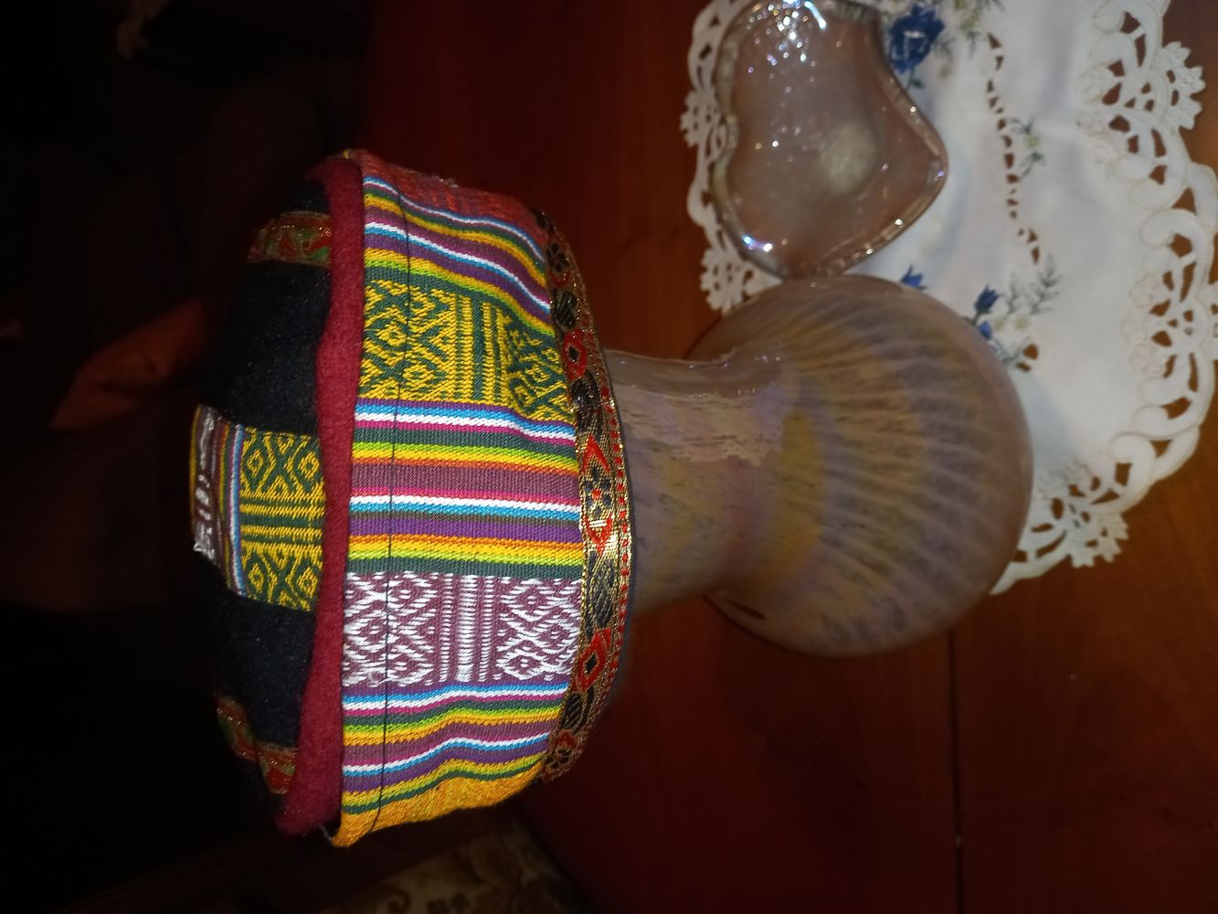 Berretto etnico foderato, in panno, diametro circa 21,5 cm