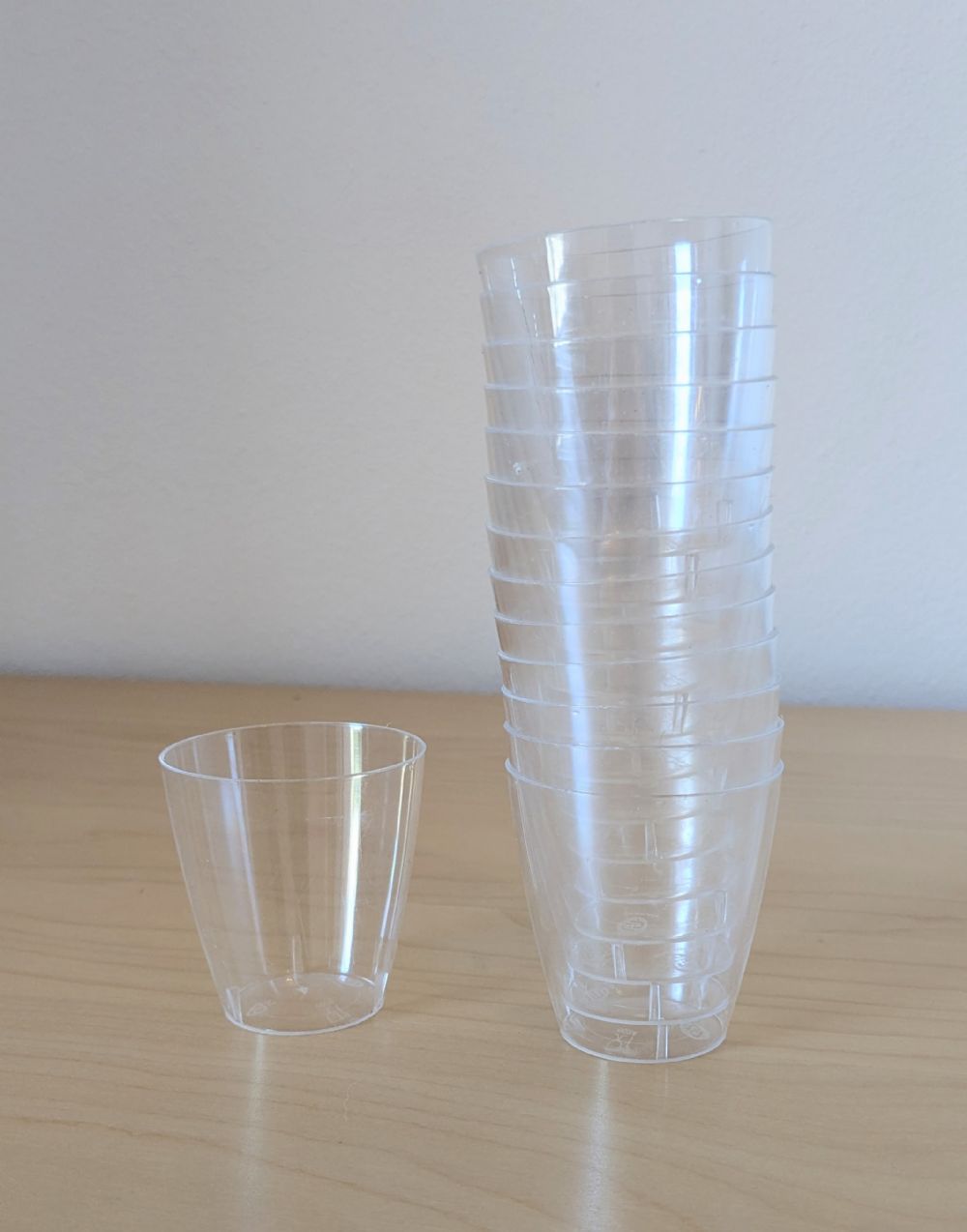 Descrizione:14 bicchierini in plastica monouso trasparente, altezza cm 5