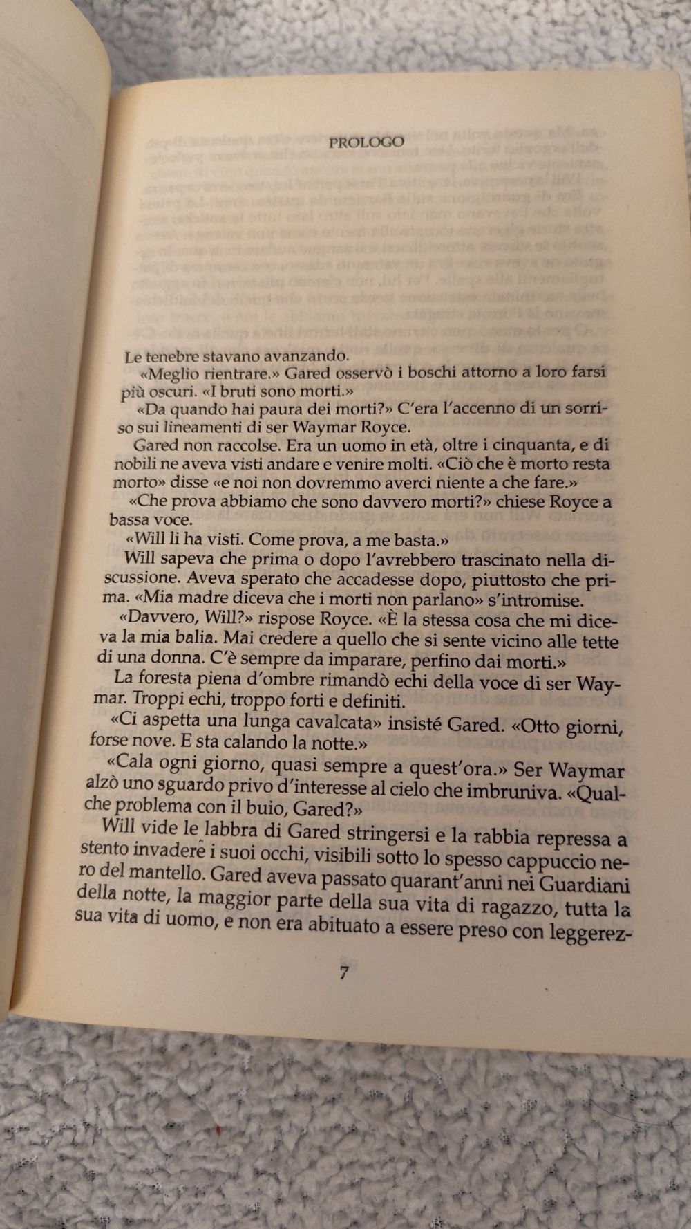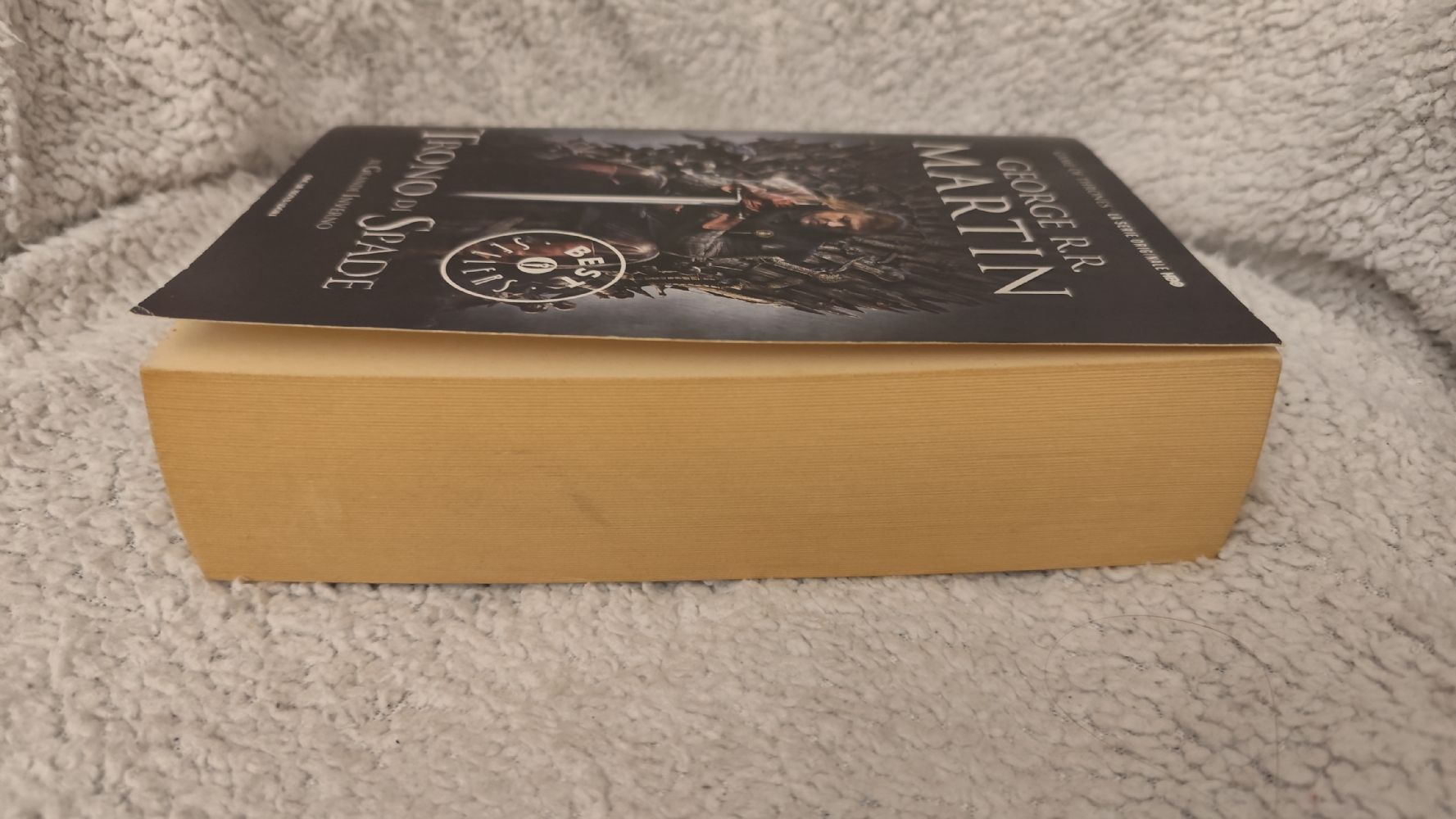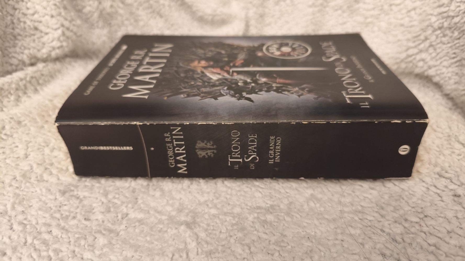 Descrizione:Il trono di spade libro di George R.R. Martin, edizione Oscar Mondadori in copertina flessibile, ottime condizioni, pagine leggermente ingiallite, costa un po' curva, segni ai bordi.