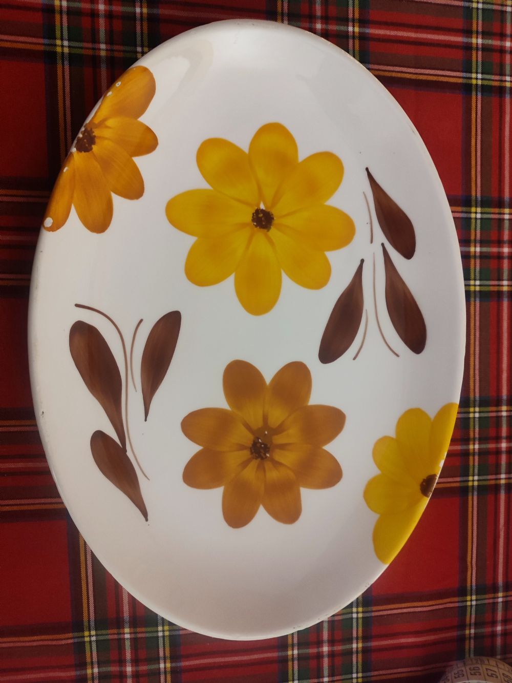 Descrizione:Piatto da portata ovale porcellana dipinto a mano vintage. Usato poco ma con profilo bordo un po' ruvido causa tempo misure 34 x 23. C'è un marchio ma nn so cosa sia