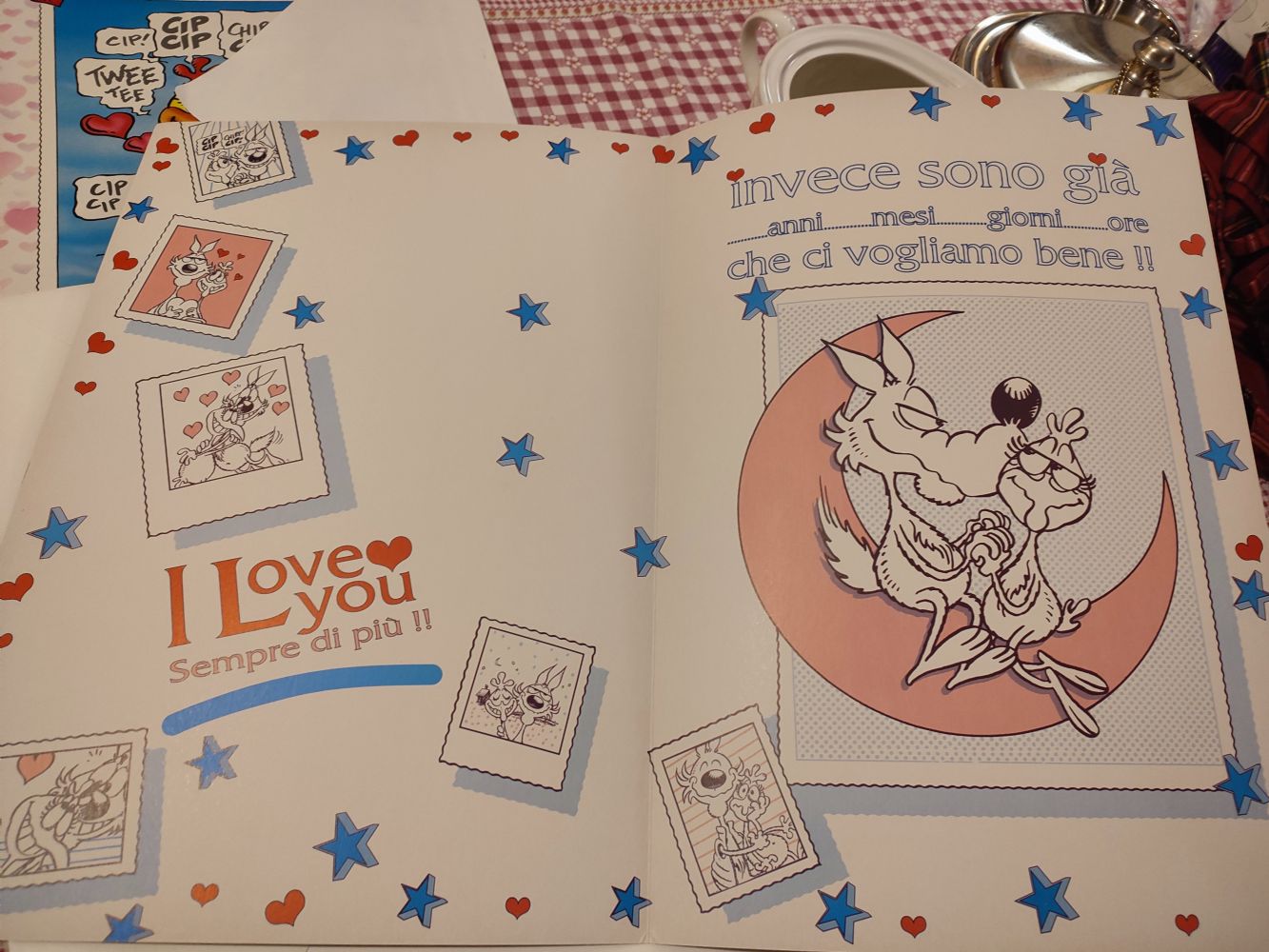 Descrizione:Mega grandissimo biglietto anniversario Lupo Alberto con bustona misura 50 x 35