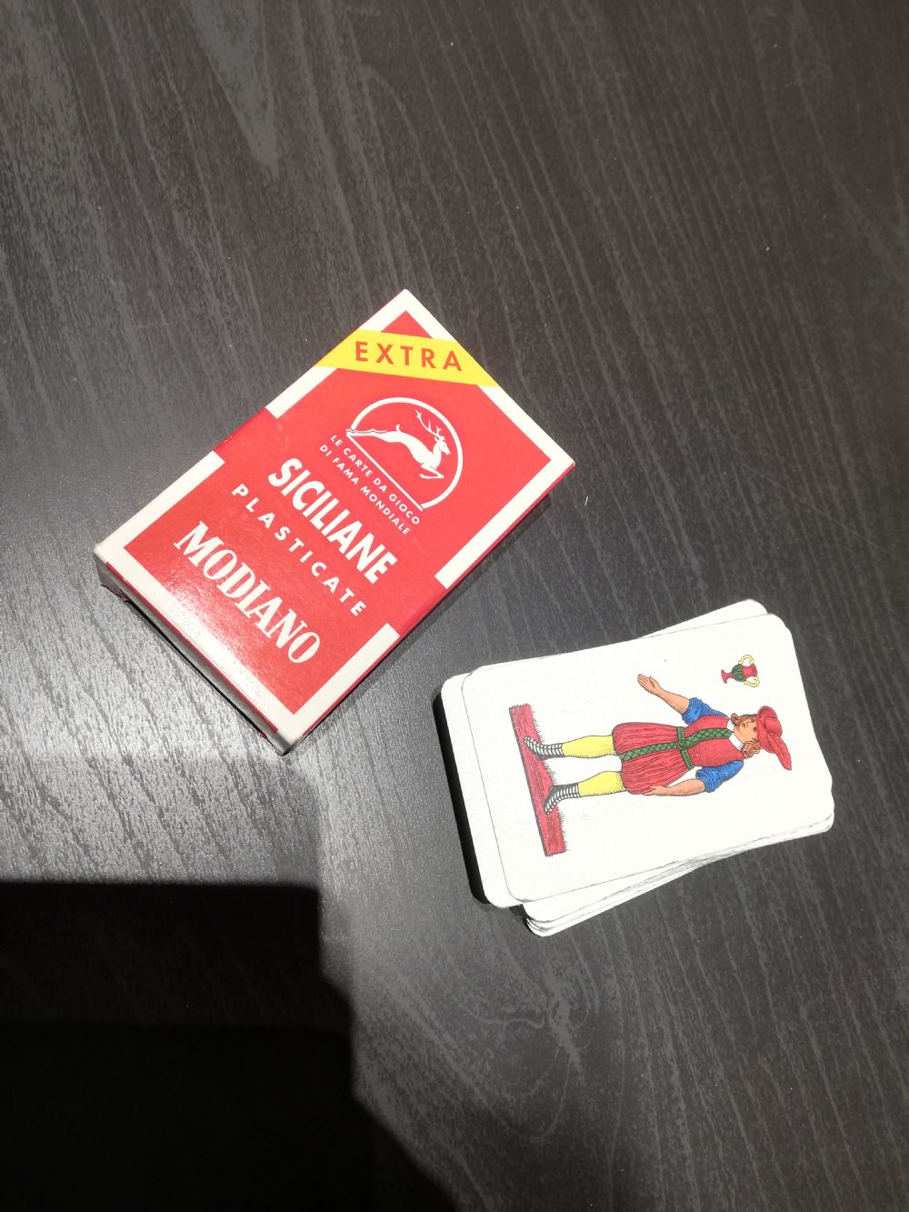 Descrizione:Carte siciliane plastificate modiano. Segno usate poco perché sono in casa da tempo ma credo mai usate perché sono troppo lisce.