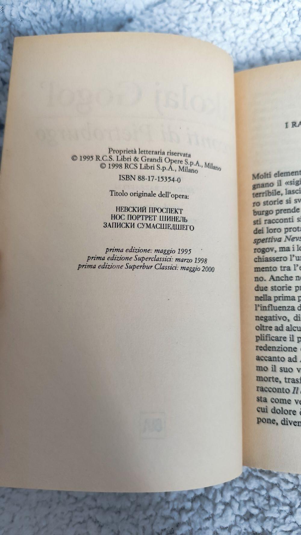 Descrizione:Libro “I racconti di Pietroburgo” di Nikolaj Gogol’. edizione vintage del 2000, SuperBur Classici, in copertina flessibile, pagine ingiallite dal tempo e copertina con qualche segno soprattutto ai bordi.