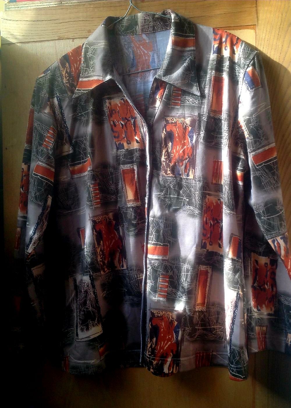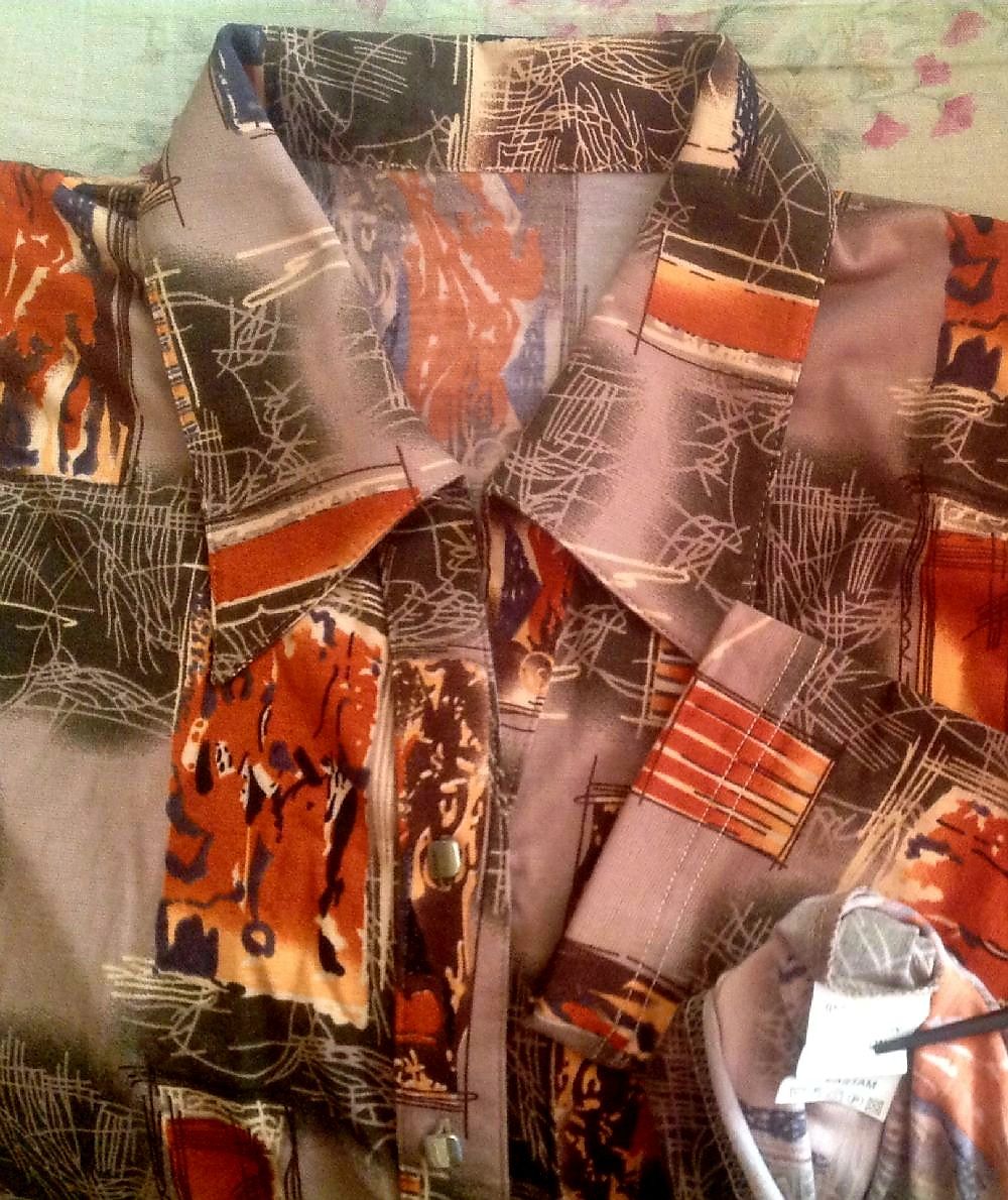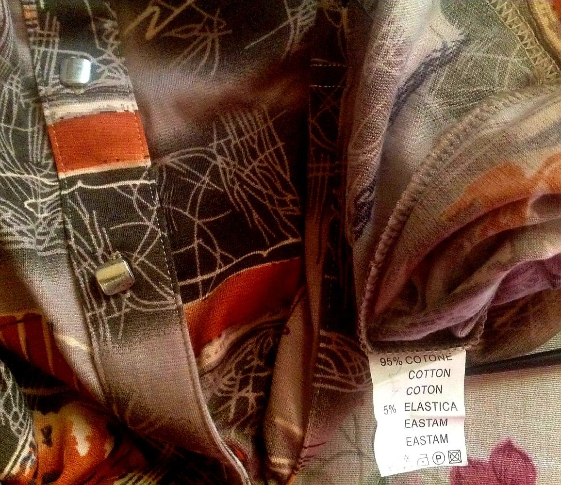 Descrizione:Camicia di mia zia, vintage o quasi, ma forse mai usata. Jersey di 95% cotone 5% elastica, tg non pervenuta, spalle 45 e ascelle 54 cm. Bottoni quadrotti di metallo, spalline (volendo scucibili).