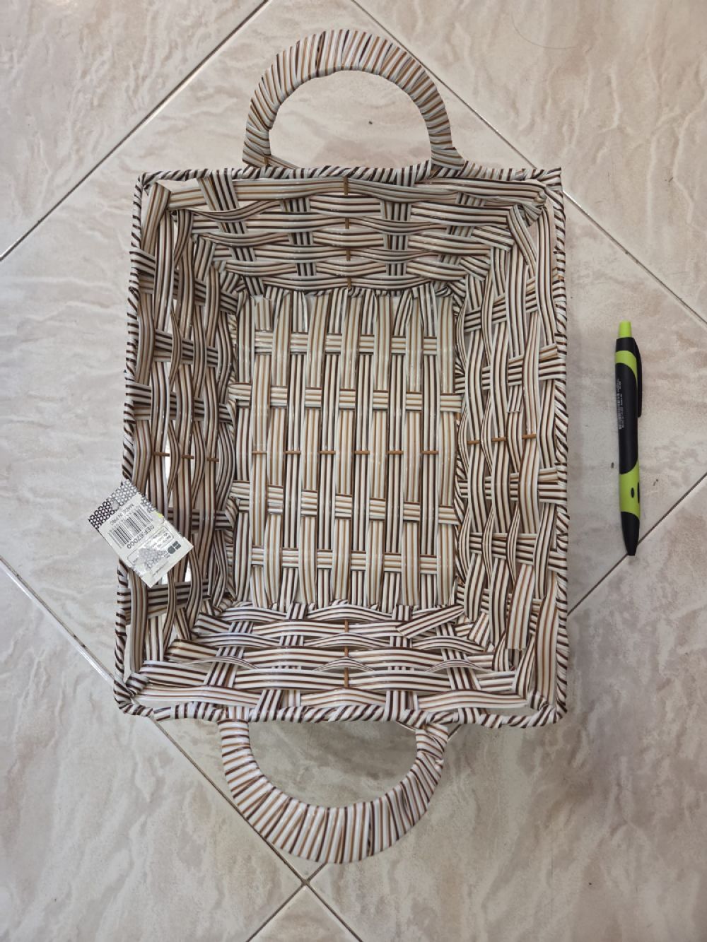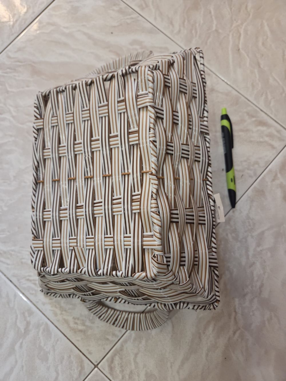 Cestino con manici rettangolare grigio, nuovo con cartellino