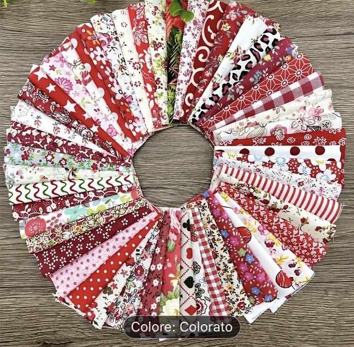 Descrizione:Sono 100 ritagli di stoffa di cotone di circa 10 x 10 cm.