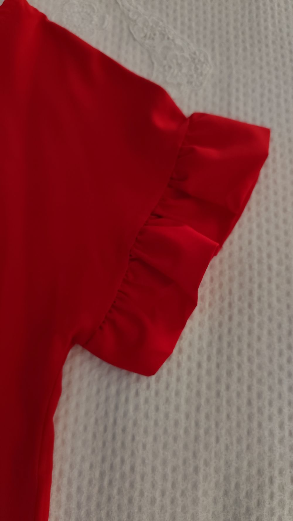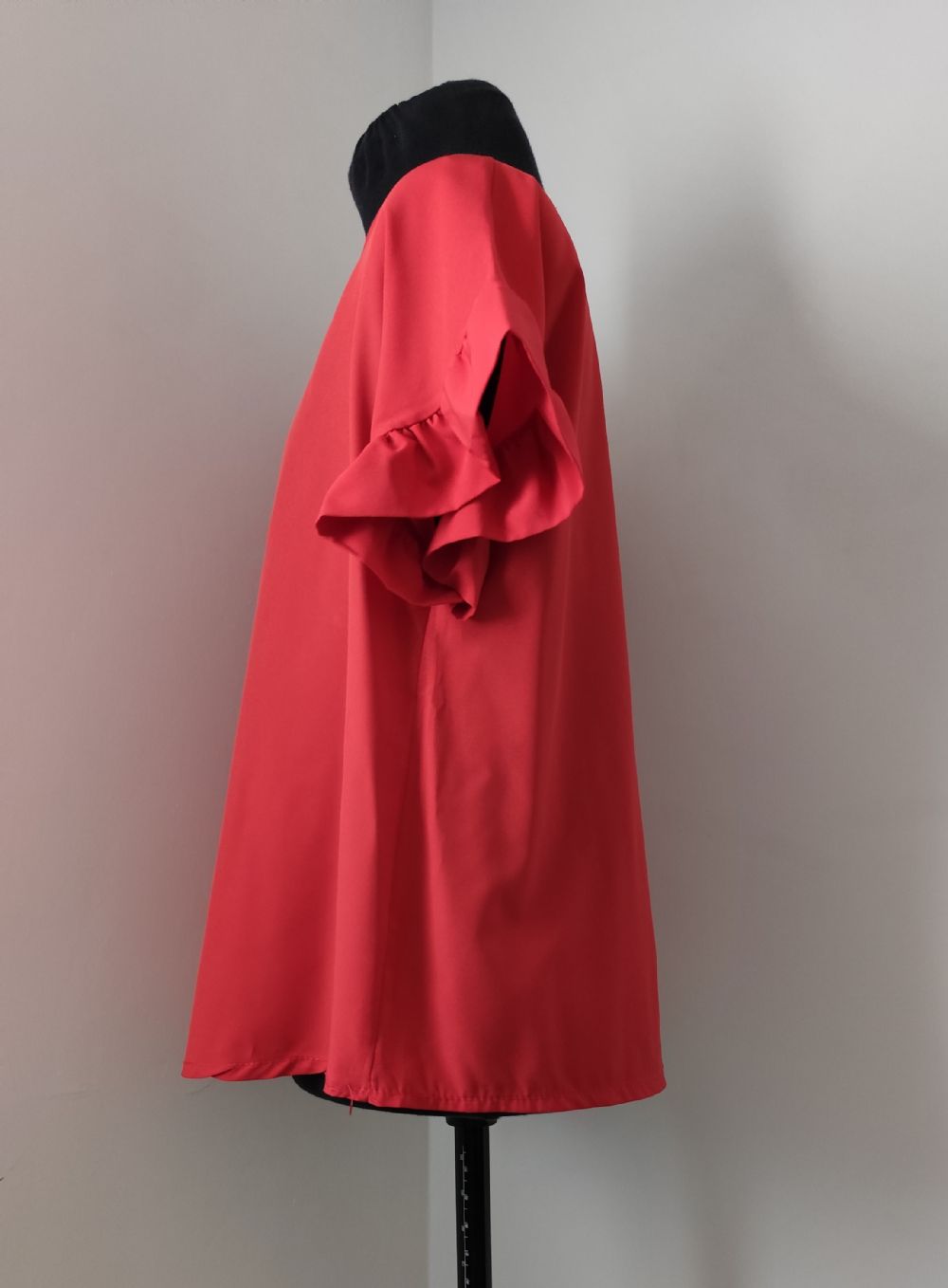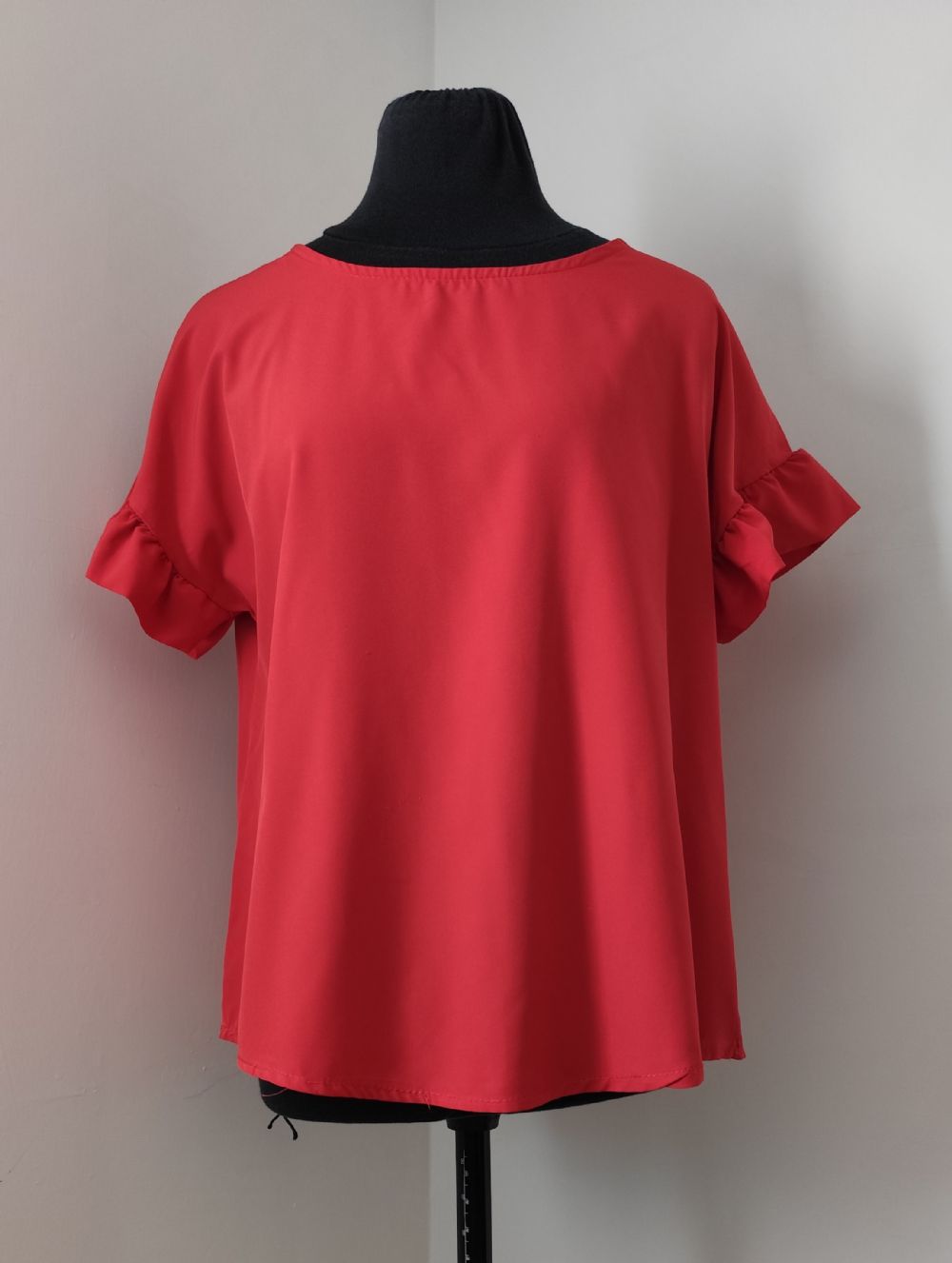 Descrizione:Blusa rossa Immenso, modello a kimono con volant alla manica, fondo arrotondato e scollatura rotonda. Il colore è più acceso dal vivo rispetto alle foto. Molto bella e basic, è in perfetto stato.