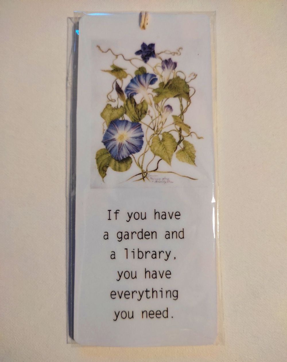 Descrizione:Segnalibro in cartoncino plastificato + semi di Ipomea colore blu/viola, nota anche come campanella rampicante .