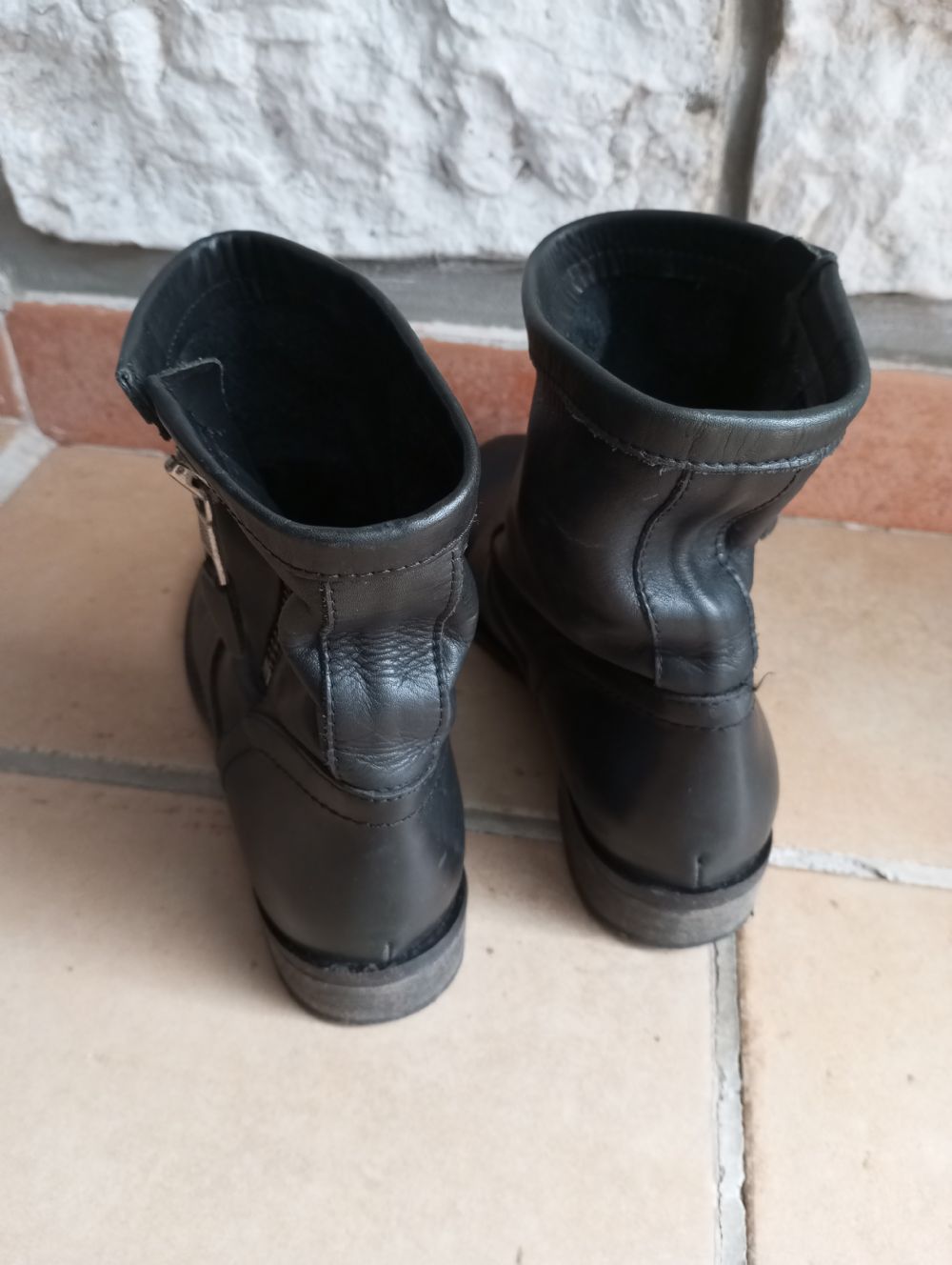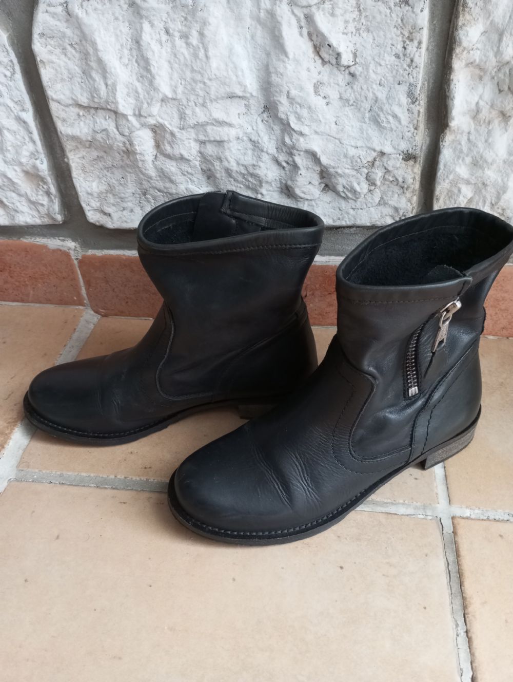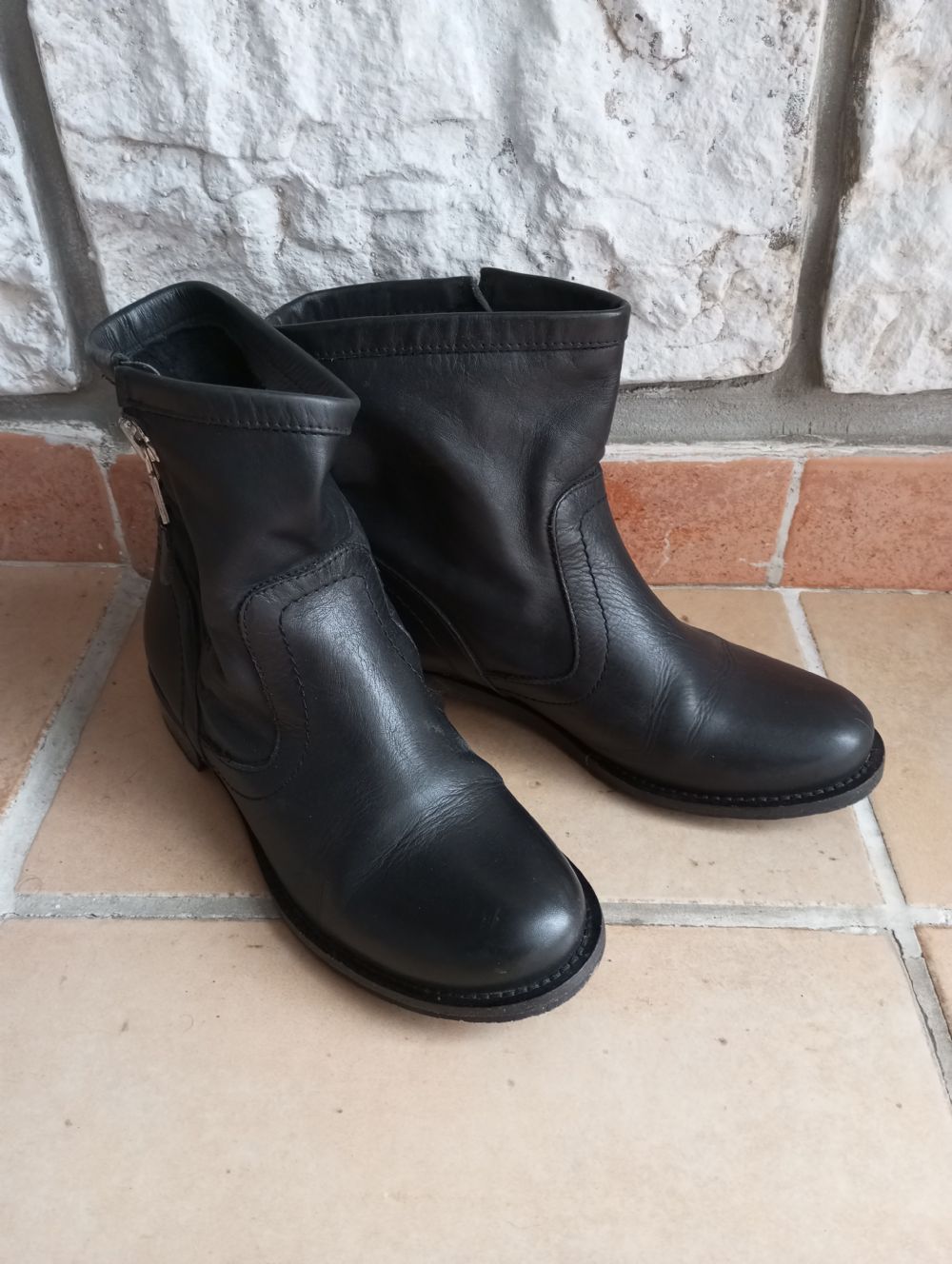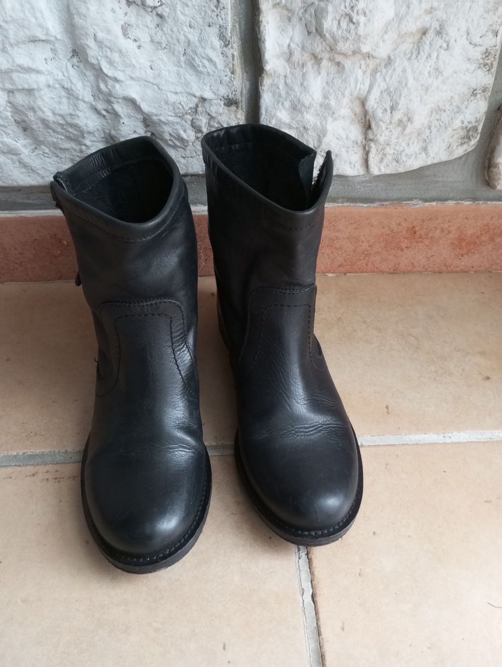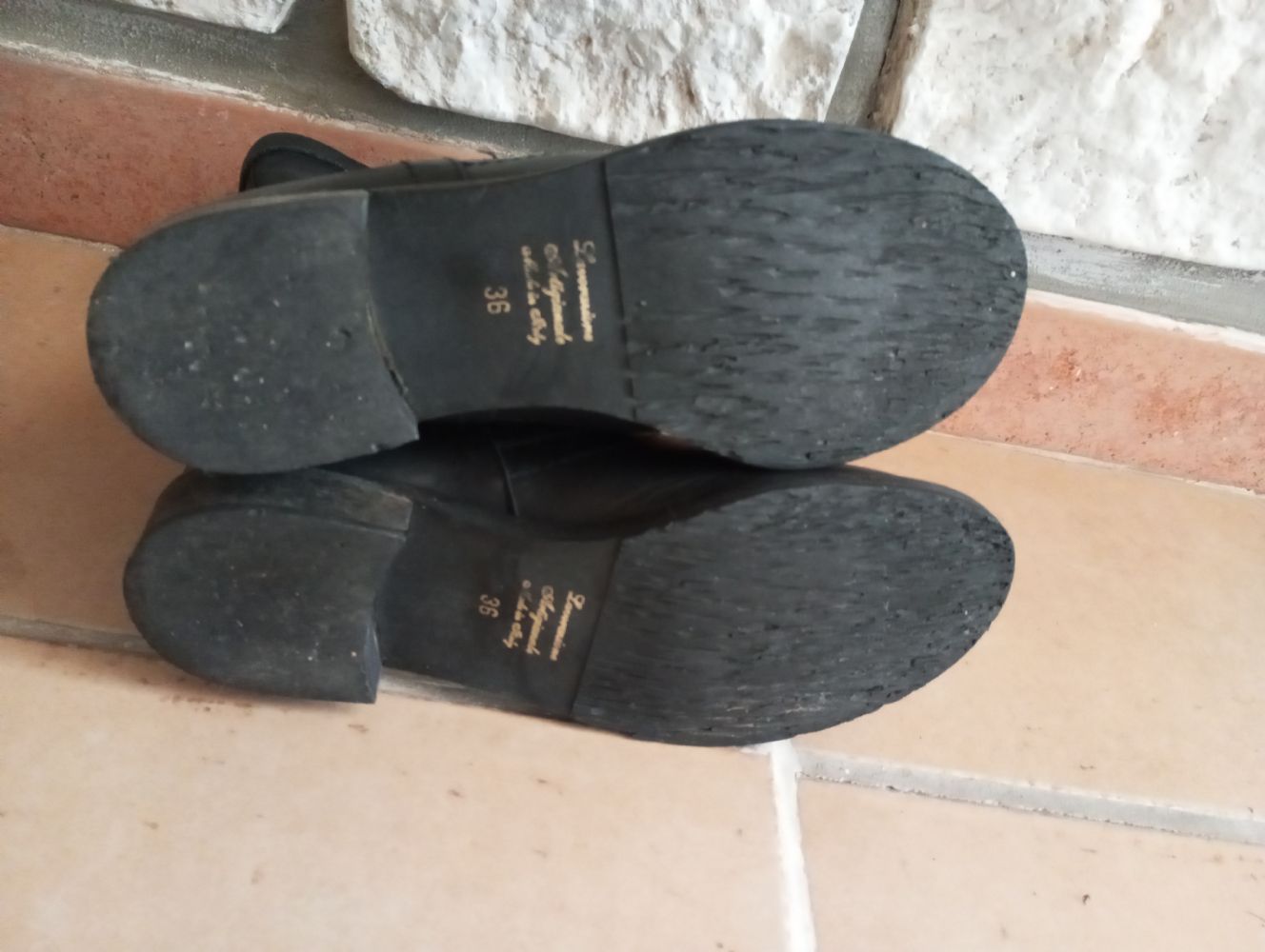 Descrizione:Stivali numero 36 made in Italy, tacco in legno, suola gomma, cerniera laterale esterna, interno in tessuto