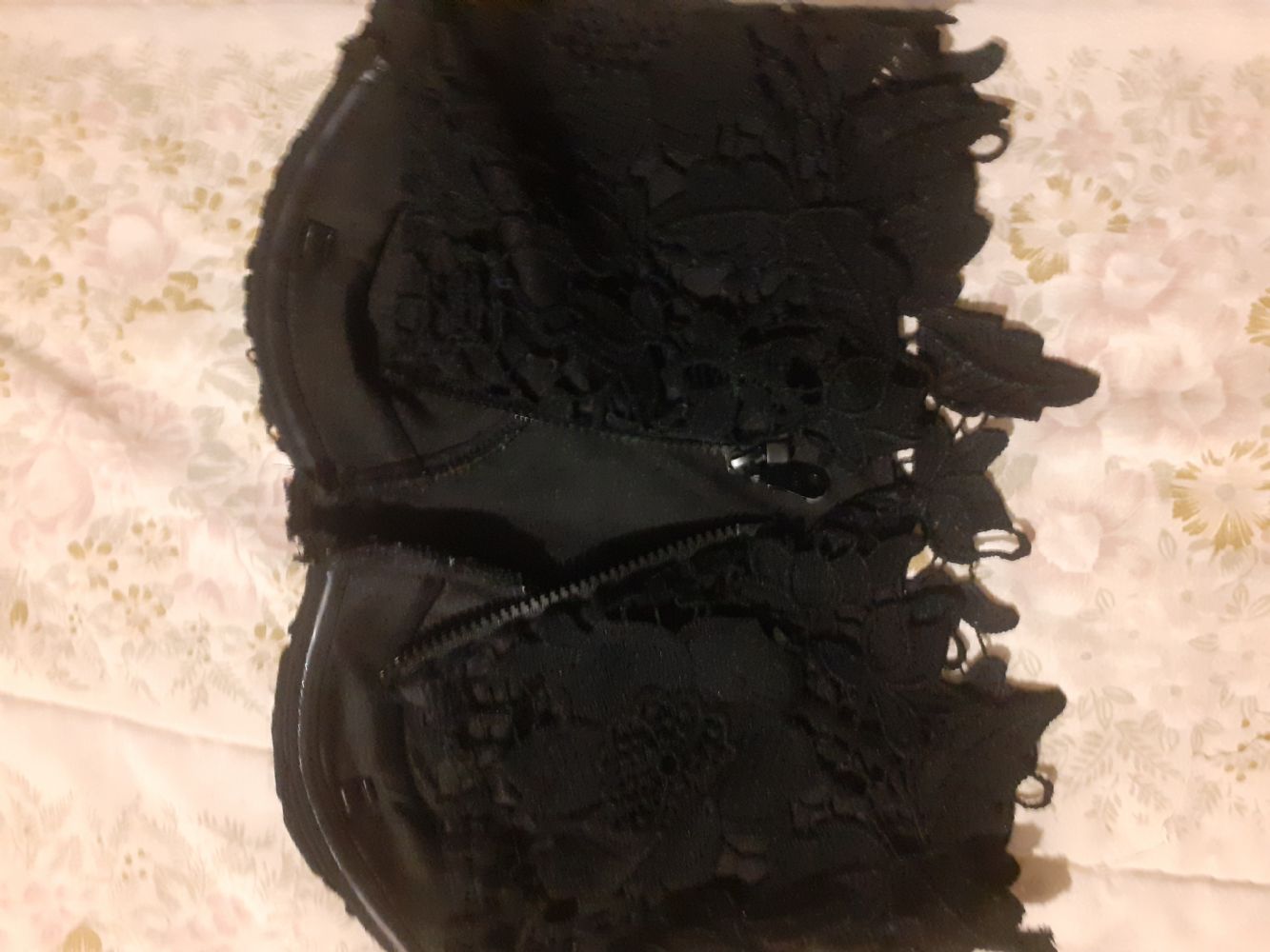 Descrizione:Corpetto pizzo nero ci sn anche i passanti per inserire delle bretelle aveva quelle da reggiseno che nn trovo più, cerniera posteriore, coppe leggermente imbottite taglia 34 corrisponde ad xs ma a me sta largo quindi anche per una S