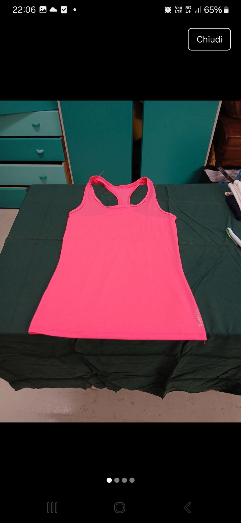 Canottiera da palestra fucsia Domyos. Non c'è etichetta ma direi TG. M. Spedisco in collettiva spero prima di Natale